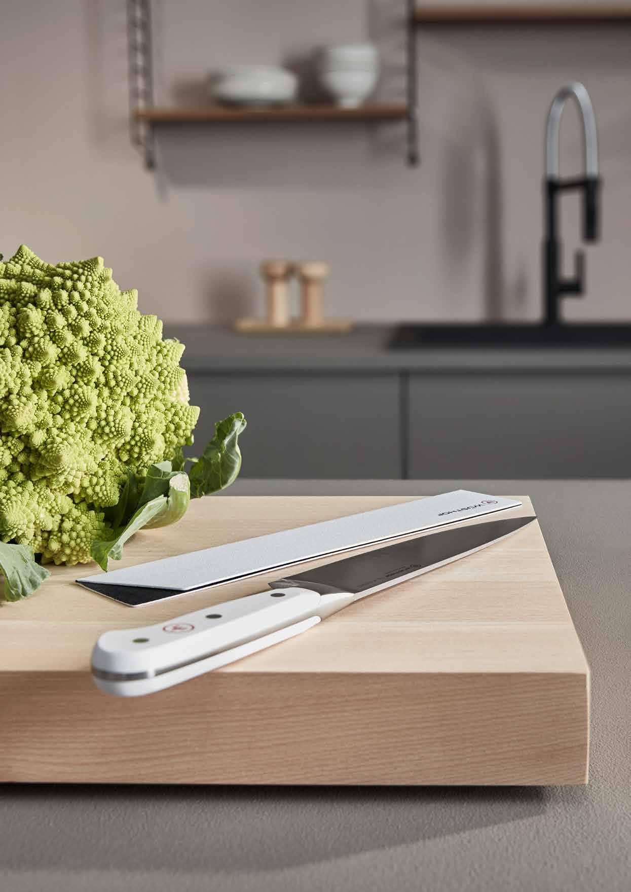 Le renfort plein protège efficacement vos doigts lors de la préparation et du service d‘aliments frais, l‘équilibre permet de travailler de façon plus agile et plus précise.