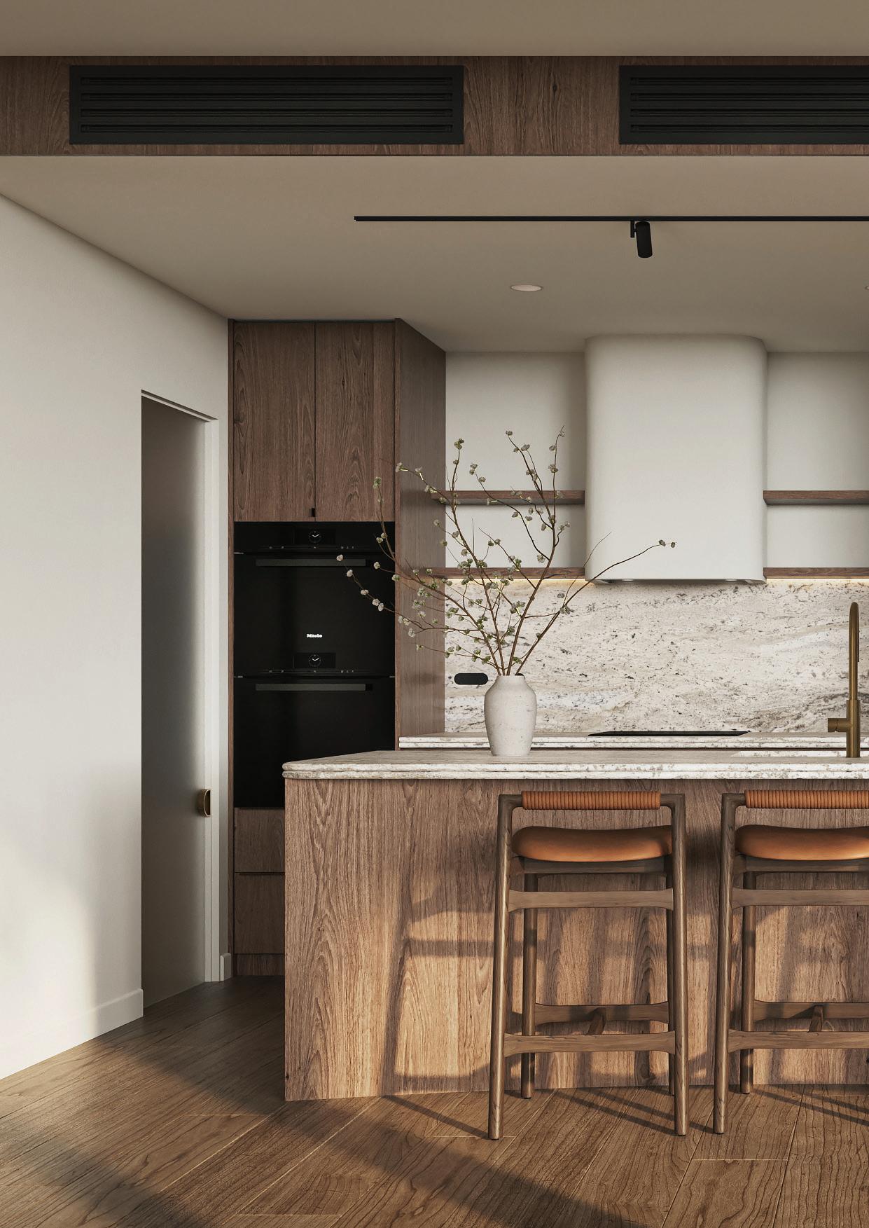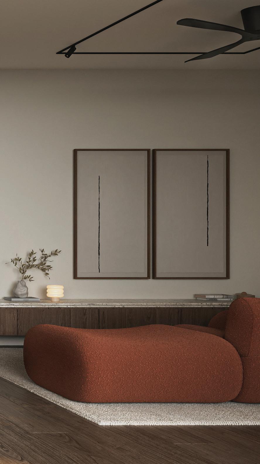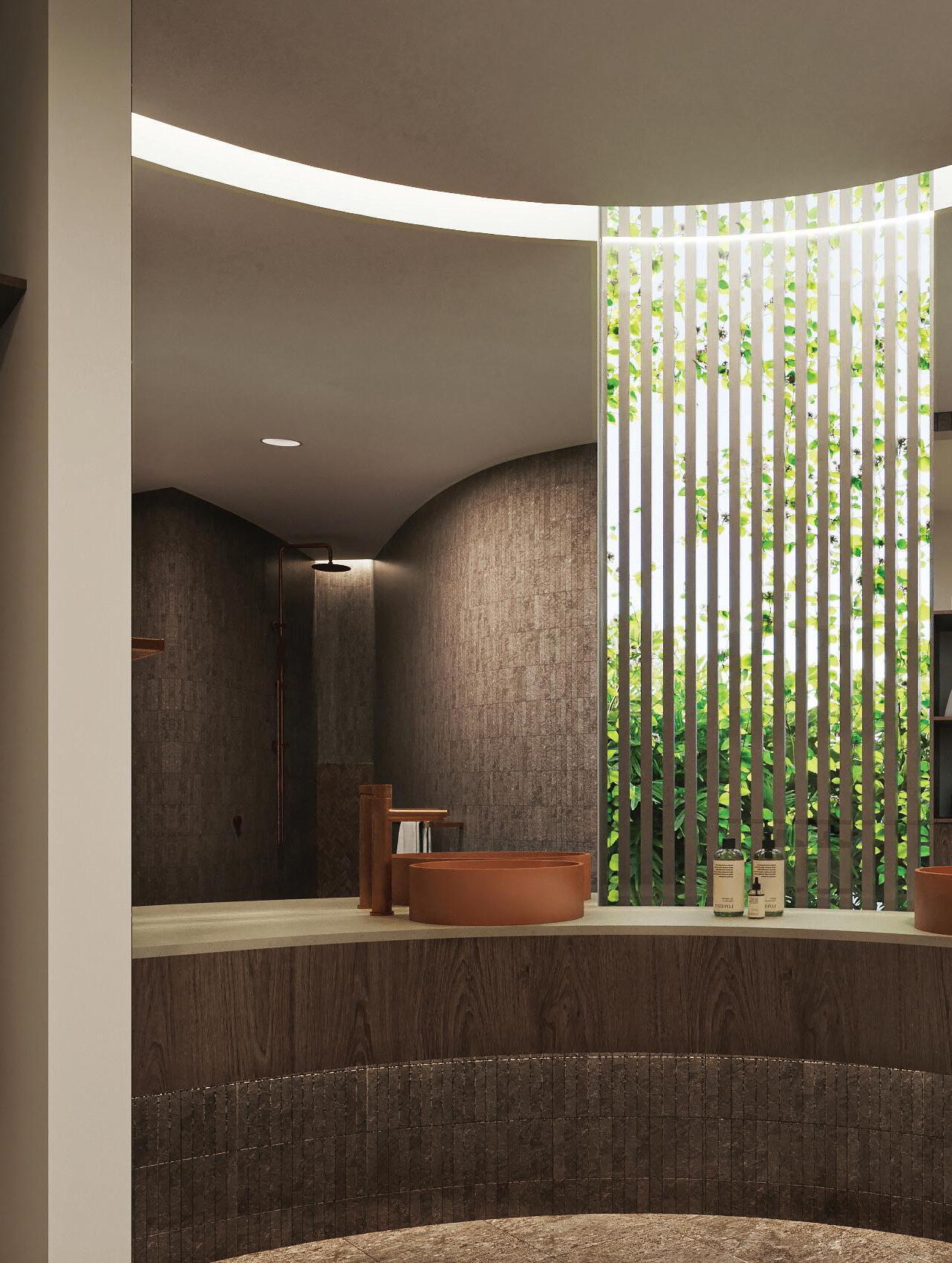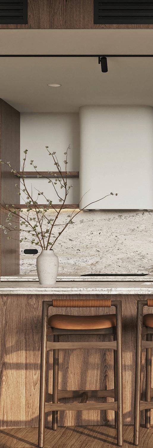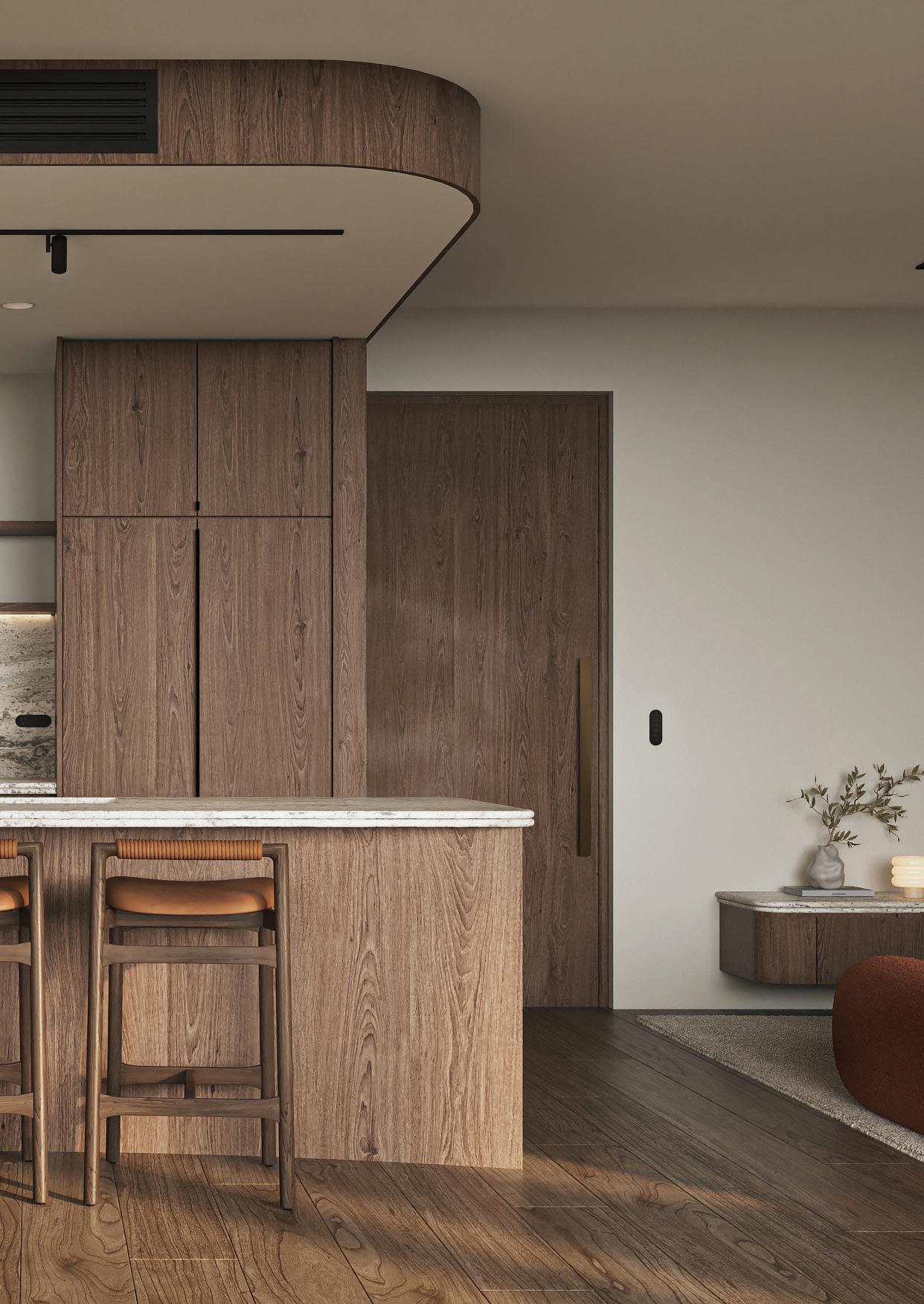 Resort living woven into every detail. Interiors shaped by curved lines, natural stone, and soft light - elements that bring a sense of calm and retreat into daily life.