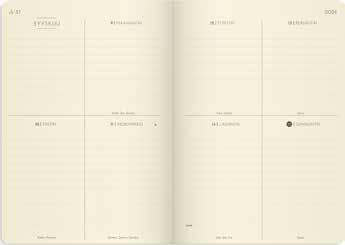 Järjestelmäkalenteri joka menoon. Sisältää 17 kuukauden peruspaketin. Kalenterin aukeamalla yksi viikko. Kalenteri sisältää nimipäivät, kansalliset pyhäpäivät, liputuspäivät, kuun vaiheet,kalendaariset tiedot, yleiset pyhäpäivät Euroopassa, muistiinpanosivut ja puhelinmuistion..
