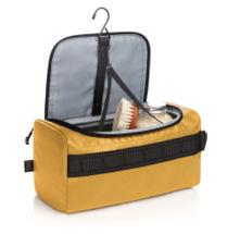 Taidokkaasti muotoiltu ja pehmustettu toilettilaukku, pöydällä pidettäväksi tai roikkumaan seinälle. Vetoketjullinen kansi. Toiminnallinen silmukkahihna sisä- ja ulkopuolella. Kaksi verkkotaskua ja vetoketjullinen tasku sisäpuolella.