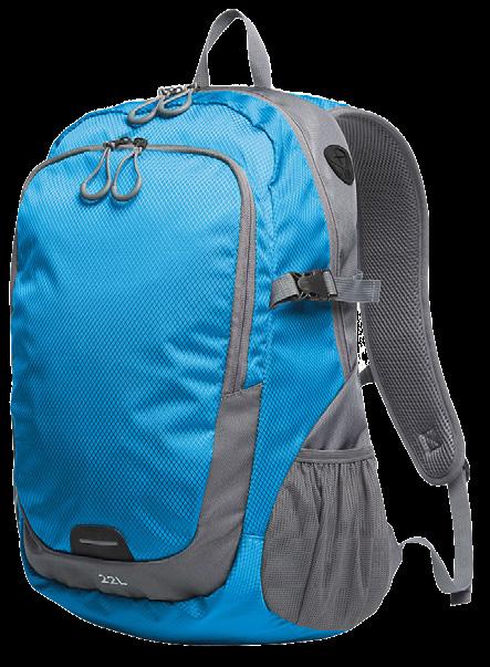Tilava ja erittäin mukava retkireppu kevyttä materiaalia. Vetoketjullinen päätasku ja etutasku, rintaremmi sekä verkkotaskut sivuilla. Topatut olkahihnat ja topattu selkä. Aukko kuulokkeiden johdolle. Materiaali: polyesteri, PVC-vapaa, ripstop. Koko: 22 l, K49 x L34 x S18,5 cm. Merkkaus: silkkipainatus tai siirtokuva.