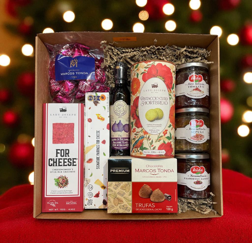 Tämä huolella koottu joulusetti tarjoaa makumatkan suolaisesta makeaan. Juustokeksit, karamellisoidut lisukkeet ja viikunabalsamico kruunaavat juustohetken, kun taas pistaasipikkuleivät, tryffelit ja suklaakonvehdit tuovat makeaa luksusta. Täydellinen tapa kiittää henkilöstöä tai asiakkaita – lahja, joka tuo joulun tunnelman ja yhteiset hetket lähelle.