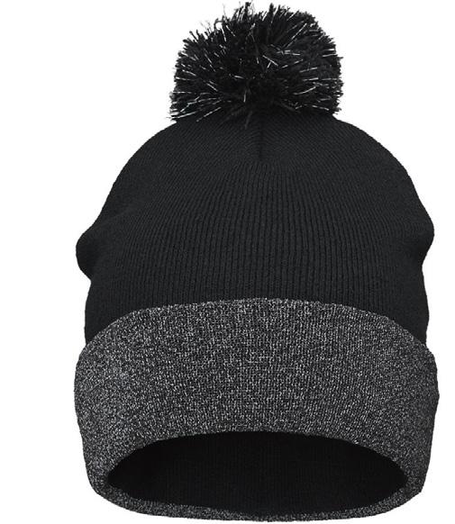 Tupsu ja käänne heijastavat tehokkaasti hämärässä, lisäten näkyvyyttä ja turvallisuutta. Pidempi malli mahdollistaa reunojen kääntämisen tai rennon käytön takaraivolla. Lämmin ja mukava neulos suojaa kylmältä. Materiaali: 75 % akryyli / 25 % polyesteri. Huomio: tuotteet eivät ole henkilönsuojaimia.