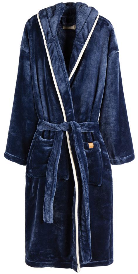 Pehmeä ja ylellinen kylpytakki. Suuri huppu ja tyylikkäät tereet tuovat asuun viimeistellyn ilmeen. Etutaskut ja vyö tekevät takista käytännöllisen ja mukavan.