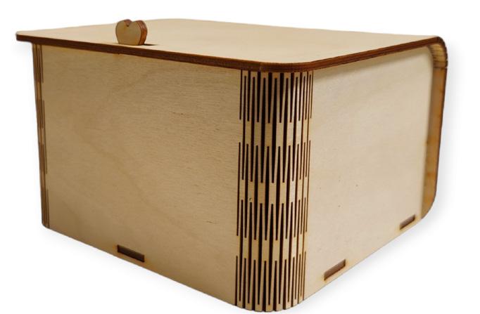 Mitat 18 cm x 10 cm x 7 cm. Lasermerkkaus: seinät tai kansi.