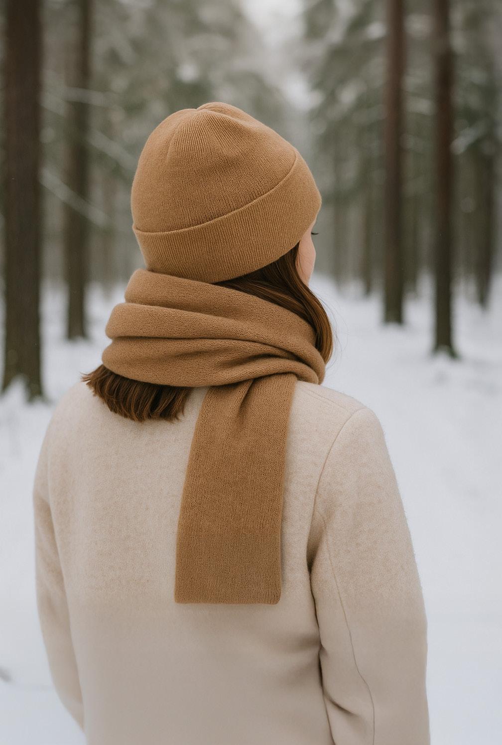 Ihana ja klassinen Kieppi -huivi on valmistettu Suomessa ja tarjoaa lämpöä sekä viimeistelee tyylin. Yhdistämällä Pohjola- tai Aina-pipoon syntyy elegantti ja käytännöllinen kokonaisuus. Huivi on monikäyttöinen ja sopii ympärivuotiseksi asusteeksi. Materiaali: 50 % merinovilla/50 % akryyli.