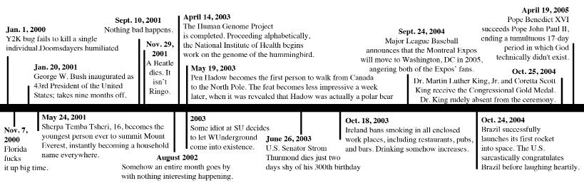 2000: “George W. Bush victorious in narrow defeat” 2004: “Three starve to death in line for ‘American Idol’ Auditions”