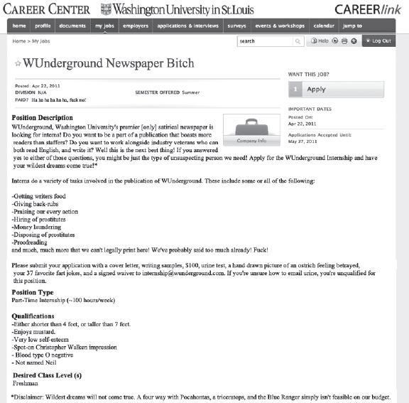 is Wash U’s premier [only] satirical newspaper and should be taken about as seriously as the Birther Movement. The news reported by this paper is completely fictitious, at least to our knowledge. Any resemblance to persons living, ailing or dead is entirely intentional.