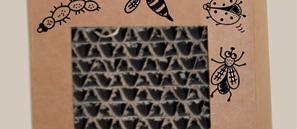 Das Hotel wird aus recycelter Pappe hergestellt und in einem speziellen Verfahren entsprechend beschichtet, damit es regenabweisend ist. Als Schutz vor Regen und Schnee, zur Überwinterung und Eibablage für alle kleinen Krabbeltiere wie Ohrenkneifer, Marienkäfer, Florfliegen usw.. Das Insektenhotel sollte an einem geschützten Platz an einer Hauswand aufgehängt werden, vornehmlich nach Süd, Süd-West um die Natur auch überlisten zu können.
