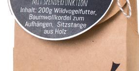 Das Vogelfutterhaus ist aus laminierter, recycelter Naturpappe, enthält 200 g Wildvogelfutter und hält aufgrund einer speziellen Beschichtung den Regenschauern stand. Ab 5.000 Stück können wir das Vogelfutterhaus in 4c bedrucken.