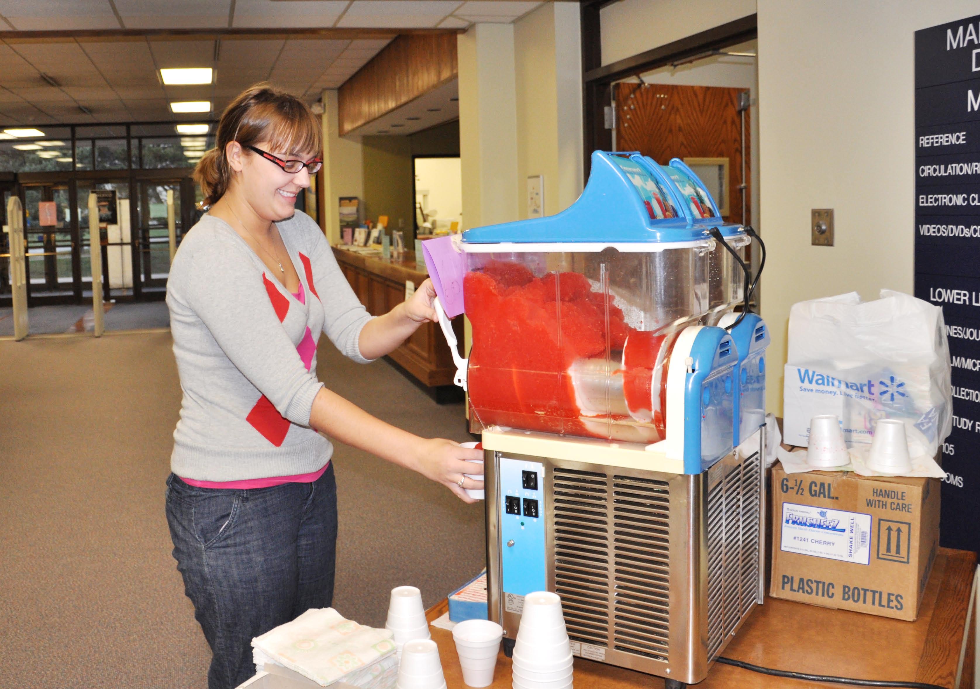 Success Week: Erica Koepsel takes advantage of the free slushes offered in Mabee Library on Tuesday, Dec. 1. The slushes were available to students and offered as a part of the free giveaways during Success Week, sponsored by the Washburn Student Government Association.