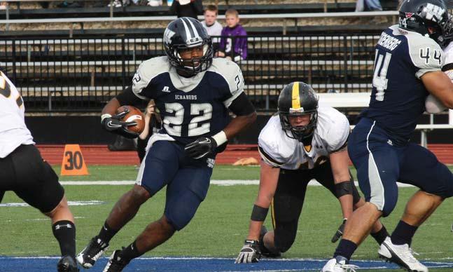 Setting the bar. Freshman running back Sean McPherson breaks through Fort Hays defense during the WU homecoming game. With an overall record of 10-3, the Ichabods won the most games in university history in 2011, including the university’s first ever NCAA playoff victory against Abilene Christian University.