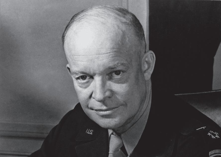 Eisenhower was born in Texas but grew up in Abilene. He served as the Supreme Commander of Allied Forces during World War II. In 1953, he became the 34th President of the United States, where he launched the Interstate Highway System, expanded civil rights enforcement and encouraged economic growth in the early years of the Cold War.