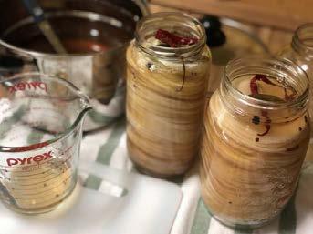 15 재료 및 준비 양념간장 만들기 1.5cm 두께로 자른 뒤 사 등분 한 무 1cm 너비 길이로 썬 오징어 물200mL, 마늘 5알, 생강 한쪽, 마른 고추 1개, 간장 40g, 설탕 10g, 꿀(조청,물엿) 10g, 쪽파, 깨 1. 냄비에 무, 오징어, 양념간장을 모두 넣고 무가 푹 익도록 끓인다. 2. 그릇에 담고 쪽파, 깨를 뿌려 완성! 오징어 무조림 오징어 보다 무가 더 맛있어지는 무조림! 재료 및 준비 무침 양념 만들기 무 꼬투리를 이용해 프라이팬에 기름을 바르면 뽀송한 전병을 만들 수 있어요~ 전병을 넓게 만들어 썰어 먹어도 좋고, 남은 무 무침은 반찬으로 먹어요^^Tip 채를 썬 무 200g 소금, 쪽파, 참기름, 통깨, 호밀 반죽(호밀 가루 100g, 물 250g, 소금 조금) 1. 채를 썬 무는 물을 반쯤 잠기도록 넣고 소금 조금만 넣어 살캉거릴 정도로만 익힌다. 한 김 빠지면 무침 양념을 넣어 버무려 둔다. 2. 프라이팬에 얇게 기름을 바르고 두 숟가락 양으로 전병을 부친다. 3. 호밀전병에 무 무침을 넣고 돌돌 말아주고 가장자리를 꾹 눌러 마무리한다. 호밀가루 빙떡 익힌 무를 밀전병에 돌돌 말아 먹는 별미 무전병. 밀가루, 메밀가루 모두 가능합니다. 재료 및 준비 만들기 둥근 모양대로 얇게 썬 무, 기본 절임 쥬스 1. 소독한 병이나 통에 무를 켜켜이 담고 절임쥬스를 채운다. 2. 냉장고에 보관하고 1~2일 후부터 먹을 수 있어요. 새콤달콤 쌈무 만들기 야채말이, 고기쌈 등 다양하게 활용할 수 있는 무절임이에요. (가톨릭 우리농 2022 5월호 참조) 고수씨 2g, 생강 작은 1알, 마른고추 1개 재료 모두 넣고 중불에서 끓기 시작하면 약한불에서 10분 정도 은은하게 끓여 준다. 완전히 식힌 후 사용하며, 향신료는 거르지 않고 절임에 같이 사용한다.