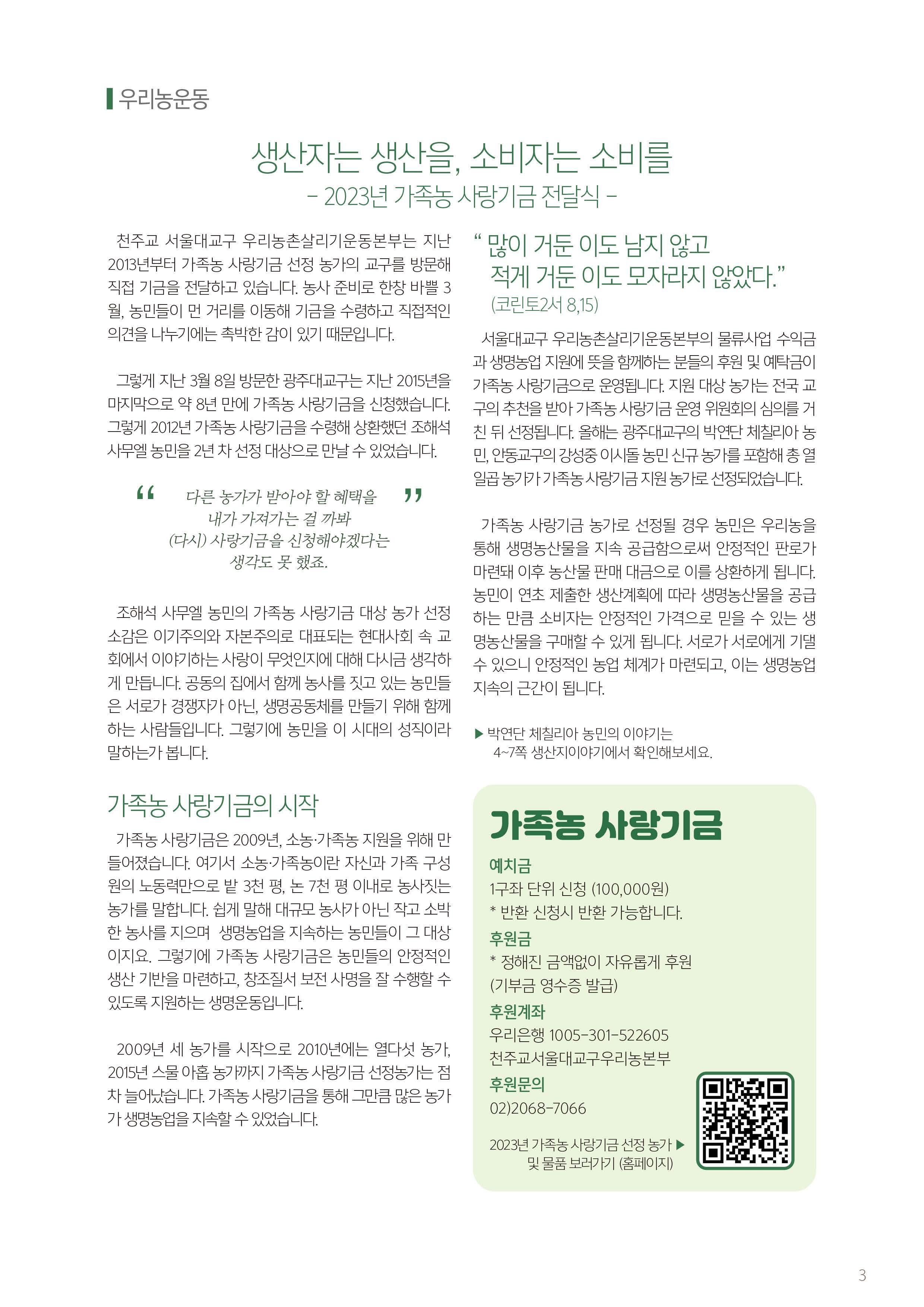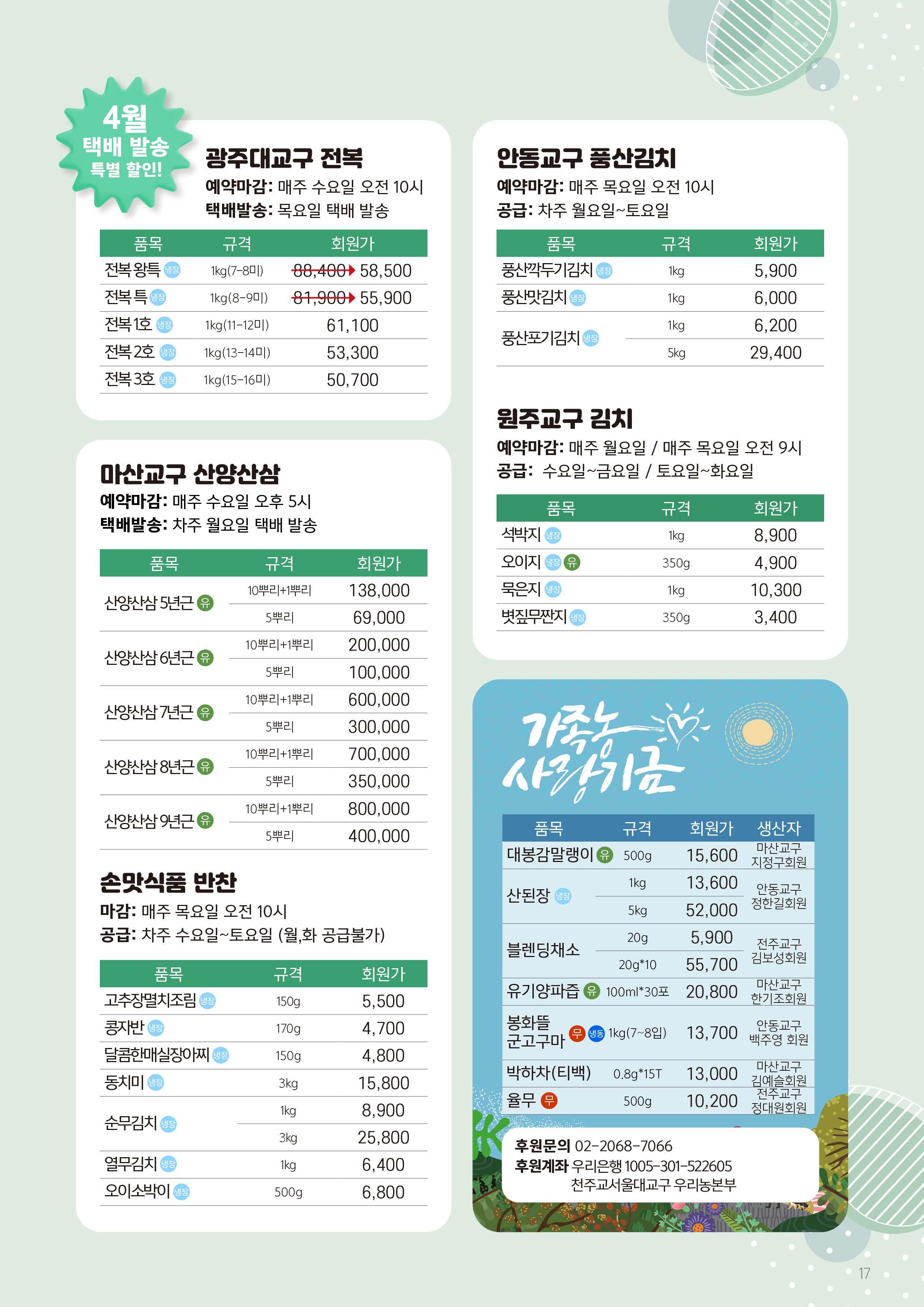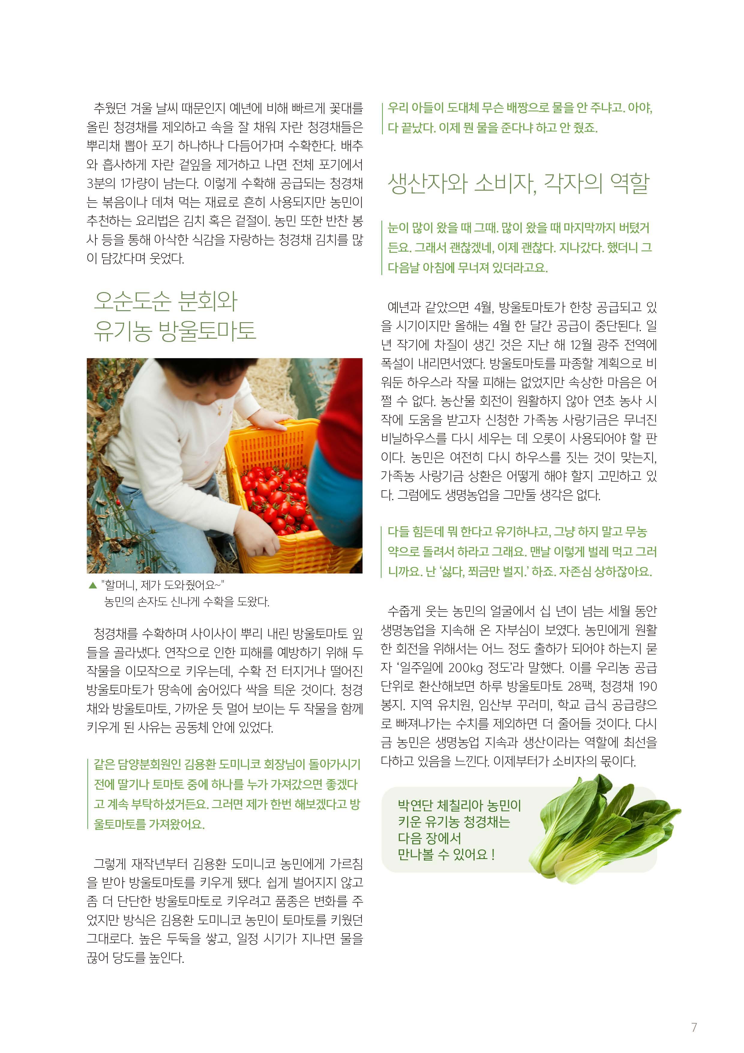 서울대교구 우리농촌살리기운동본부 월간 소식지 제343호 광주대교구 담양분회 박연단 체칠리아 농민 #우리농 #가톨릭농민회 #4월 #우리농운동 #가족농 #사랑기금 #가족농사랑기금 #유기농 #청경채 #방울토마토 #생명농업 #친환경 #소농 #그린푸드 #레드푸드 #비트차 #토마토 #새싹 #양배추 #피부암 #암 #질환 #한식 #청명 #곡우 #청경채겉절이 #겉절이 #김치 #토종종자 #보리콩 #돌나물 #물김치 #나물물김치 #할인 #신규 #예약 #전복 #전복할인 #두부 #우리농두부 #명동보름장 #해조류 #간편요리 #삼층거리파 #교구본부소식 #주문안내