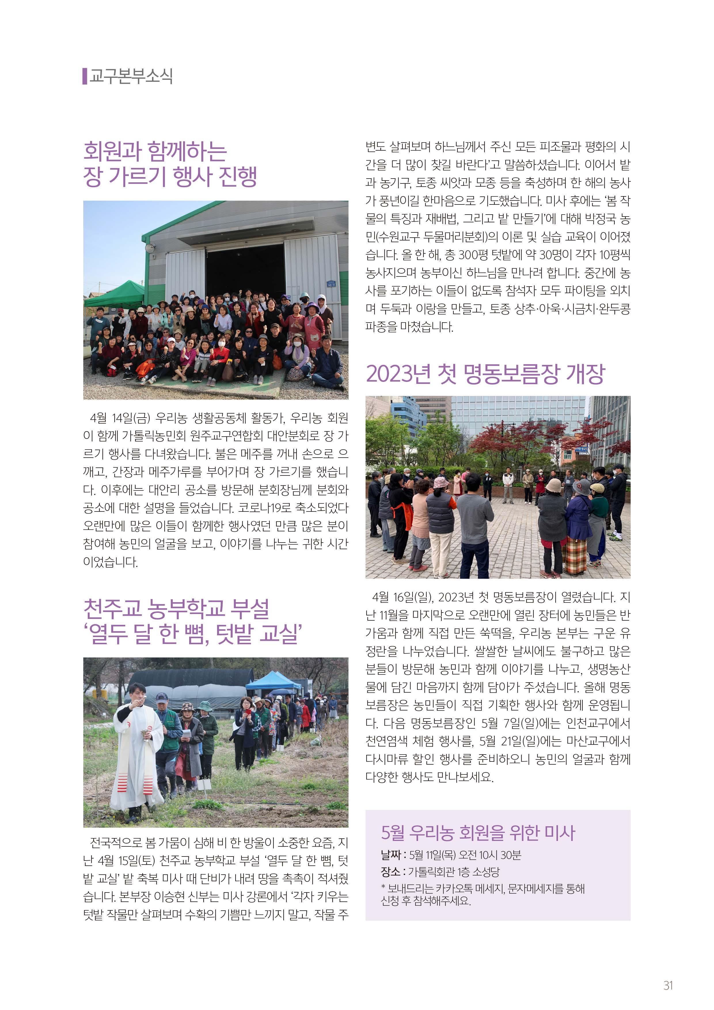 서울대교구 우리농촌살리기운동본부 월간 소식지 제344호 농업회사법인 남도의 꿈 라동식 대표 #우리농 #가톨릭농민회 #5월 #우리농운동 #정기이사회 #기념미사 #강론 #정기대의원총회 #생태사도 #돼지 #돼지고기 #동물복지 #무항생제 #양돈 #농장 #떡갈비 #동그랑땡 #A형간염 #입하 #소만 #24절기 #전통 #동파육 #즐거운지구생활 #세계생물다양성의날 #생명밥상 #모내기 #쌈밥 #땅콩쌈장 #해조류 #수산물 #할인 #정보 #예약 #유기농 #농산물 #축산물 #친환경 #캠핑 #캠핑물품 #토종종자 #눈뻘게감자