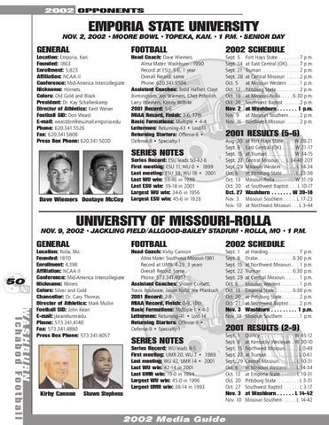 UNIVERSITY OF MISSOURI-ROLLA NOV. 9, 2002 • JACKLING FIELD/ALLGOOD-BAILEY STADIUM • ROLLA, MO • 1 P.M.
