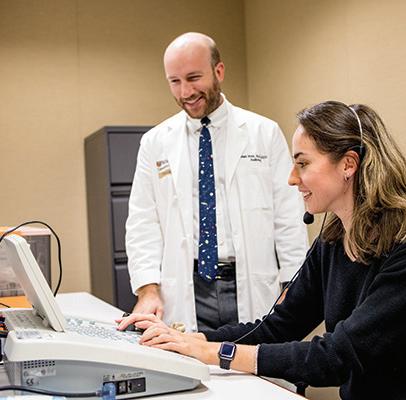 The Doctor of Audiology (AuD) program is a three ‑year course of study that emphasizes learning through hands‑ on experiences, coursework taught by experts in the field, and integration of current research. The program operates within the Department of Otolaryngology‑Head & Neck Surgery and School of Medicine, which offers students an exceptional interdisciplinary learning environment. From day one, students are immersed in clinical experiences, lab activities, weekly staffings, and 24/7 access to clinical learning labs devoted to student learning.
