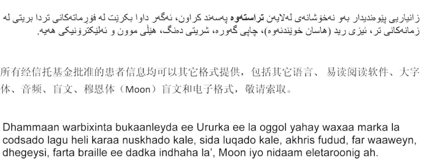 ToateinformațiileaprobatedeTrustsuntdisponibile,lacerere,înformatealternative, inclusivînaltelimbi,înformatușordecitit,cucaracteremari,audio,Braille,Moonși electronic.