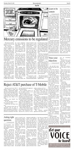 Reject AT&T purchase of T-Mobile You have seen the ad. The TMobile woman is young, and wearing a red-and-white striped dress that recalls summer and the American flag. The iPhone man is also young, but he is swathed in dark clothes, and he has a bald middle-age man riding on his back. "Who's your friend?" the woman asks. "It's the old AT&T network," the young man replies. "That'll slow you down," she says. The consumer choice that ad represents will go away if AT&T's purchase of T-Mobile is approved by the Federal Communications Commission. We think