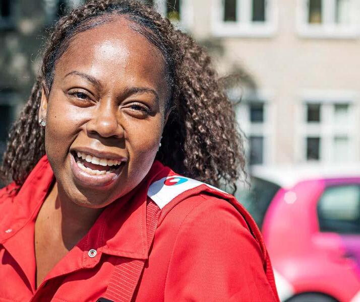 zorgcollega’s in het rood en blauw