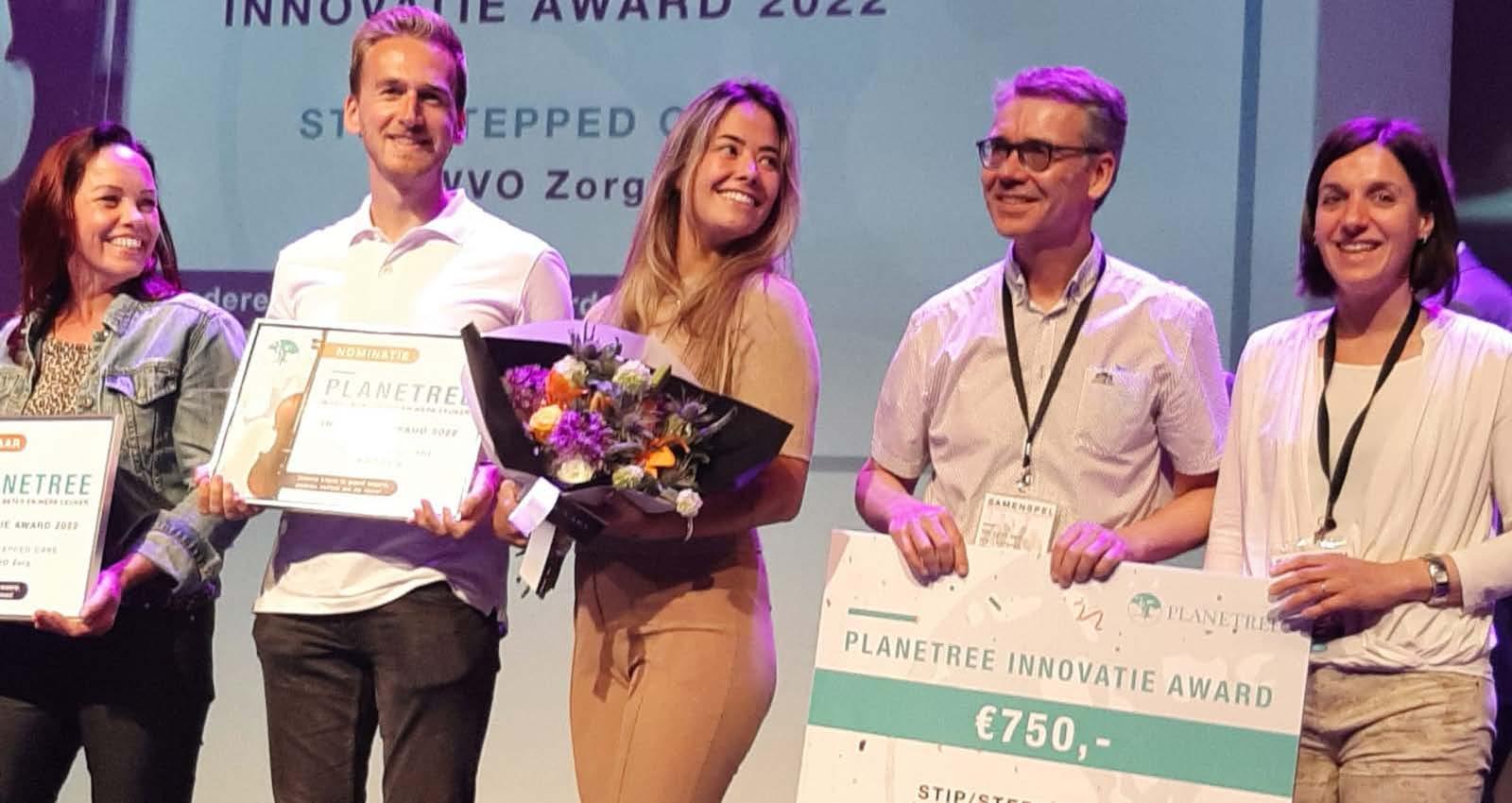 Trots zijn we dat wij in 2022 de Innovatie Award mochten ontvangen voor de innovatieve methode STIP/Stepped Care. Dit is een wetenschappelijke methode die we toepassen in de zorg voor met name cliënten met dementie. Met de STIP/Stepped Care methode brengen we alle wensen en behoeften van de cliënt in beeld. We weten wat iemand gelukkig maakt, wat stress veroorzaakt en hoe iemand hierop reageert. Het resultaat? Een vermindering van onbegrepen gedrag met wel 50%.