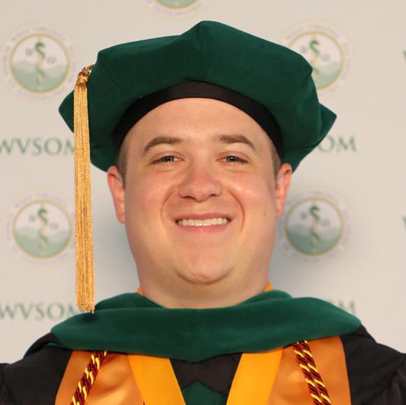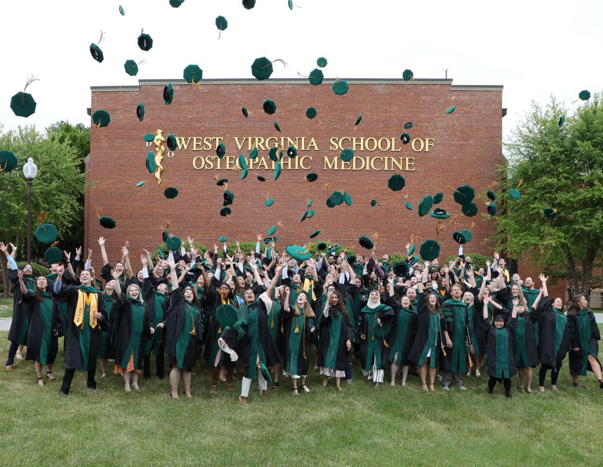 Content manager Tiffany Wright Writer/editor Ken Bays design manager Jennifer Spencer graphiC designers Karen Ayers Druann Dalton photographers Pat Bauserman Druann Dalton Jessica Lewis a publication of the West Virginia School of Osteopathic Medicine Departments 4 Keeping bright minds burning: Shining a light on mental health 12 Graduation 18 Graduate Profiles 26 Spring Awards 28 Class of 2024 White Coat Ceremony 30 Craig Boisvert, D.O., recognized in Health Care Hall of Fame Features 32 WVSOM educational camp 34 Students assist at statewide vaccination clinics 36 Campus construction 37 Rural Practice Day 39 U.S. News & World Report recognition 40 Research Researcher finds that nutritional wellness during gestation has far-reaching effects 42 Faculty & Staff WVSOM celebrated outstanding retirees, employees New Hires 46 Alumni Letter from the board president Annual mid-winter seminar engraved brick donor opportunity Emily Boothe, D.O., promotes mindfulness for mothers DeanAnn Farris, D.O., discusses mental health issues Class notes 57 Foundation Letter from the board president Board of Directors Gifts to WVSOM 62 We’d like you to meet... aspire - academic support and intervention resources Back cover Upcoming events 45 WVOMA 56 WVSOM Campus Store aDvertising