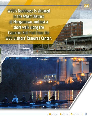 WVU’s Boathouse is situated in the Wharf District of Morgantown, and just a short walk along the Caperton Rail Trail from the WVU Visitors’ Resource Center.