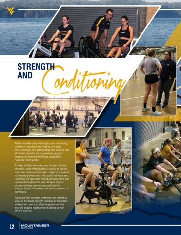 Athletic excellence and strength and conditioning go hand-in-hand at West Virginia University. WVU’s strength and conditioning staff ensures that all student-athletes are on year-long program designed to improve the fitness capabilities needed in their sports. To keep athletes improving and in peak physical condition, West Virginia offers a variety of training areas and an array of strength programs designed to increase performance. All student-athletes also have their own program individually calculated and updated throughout the year. At West Virginia, student-athletes can rest assured that their strength staff is monitoring their performance on a daily basis. Equipped with excellent amenities and staffed by some of the finest strength coaches in the nation, athletes who come to West Virginia know that they are in good hands when it comes to their athletic capacity.