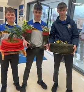 McMahon’sWoodcrafts classontheirvarious projects.Onegroup wasputtingthe finishingtouchesto flowerboxeswhichthe TYhorticultureclasswill fillwithspringflowers