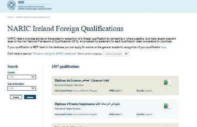 Інформаційний довідник для громадян У країни | 05 Агентство з забезпечення якості освіти й кваліфікації в Ірландії (Quality and Qualifications Ireland, QQI) полегшує визнання іноземних дипломів через NARIC (ознайомтеся з інформацією нижче з посібника користувача NARIC). Про ц е й по с іб ни к У цьому посібнику міститься ін формація про ін оземні кваліфікацій та одержання консультацій щодо їх визнання в Ірландії. У ньому показано, як використовувати базу даних іноземн их кваліфікацій N ARIC Ireland. NAR IC Ir el an d Ірландськ ий Національ ний інформаційний центр академіч ного визнання документів про освіту надає консультації про академічне визн ання іноземних кваліфікацій. М и намагаємося порівн яти ін оземну кваліфікацію з ірландською подібного типу та рівня в Ірландській національній системі к валіфік ацій (NFQ). База д а ни х іно зе мни х к в а л і ф ік а ц і й NAR IC База даних ін оземних квал іфікацій N ARIC Ireland надає кон сул ьтації та інформацію про порівнянність щодо академічн их кваліфікацій. Ця інформація допоможе вам зрозу міти свою кваліфікацію в контексті ірланд ської системи освіти та професійн ої підготовки. Вона також може допомогти працедавцям, аген ціям фінан сування й установам освіти та професійної підготовк и виз нач ити, ч и має претен дент академічну кваліфікацію для певної роботи, фін ансу вання чи курсу. Кваліфікації немає в базі дани х? Якщо ви не можете зн айти свою кваліфікацію в базі даних, можете звернутися д о нас елек тронною поштою за адресою naric@qqi.ie ,і ми зробимо все можливе, щоб допомогти вам. Ми не маємо офісу, відкритого для відвідувачів, та відповід аємо на ваші запитання лише елек тронною поштою.