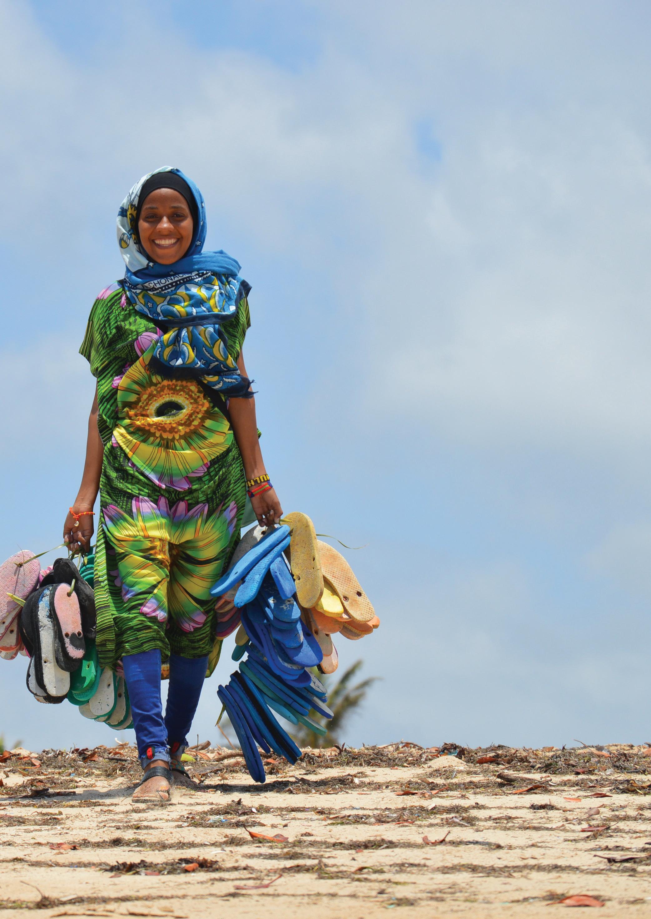 A lot of flip flops end up on the shore, we pick them during clean ups, clean them up, sort them by color with other like-minded people in Mkokoni and turn what could have ‘poisoned’ the living things in the water we depend on into cash. We earn a living as well as clean the ocean from plastic.” Mulhat Mohamed