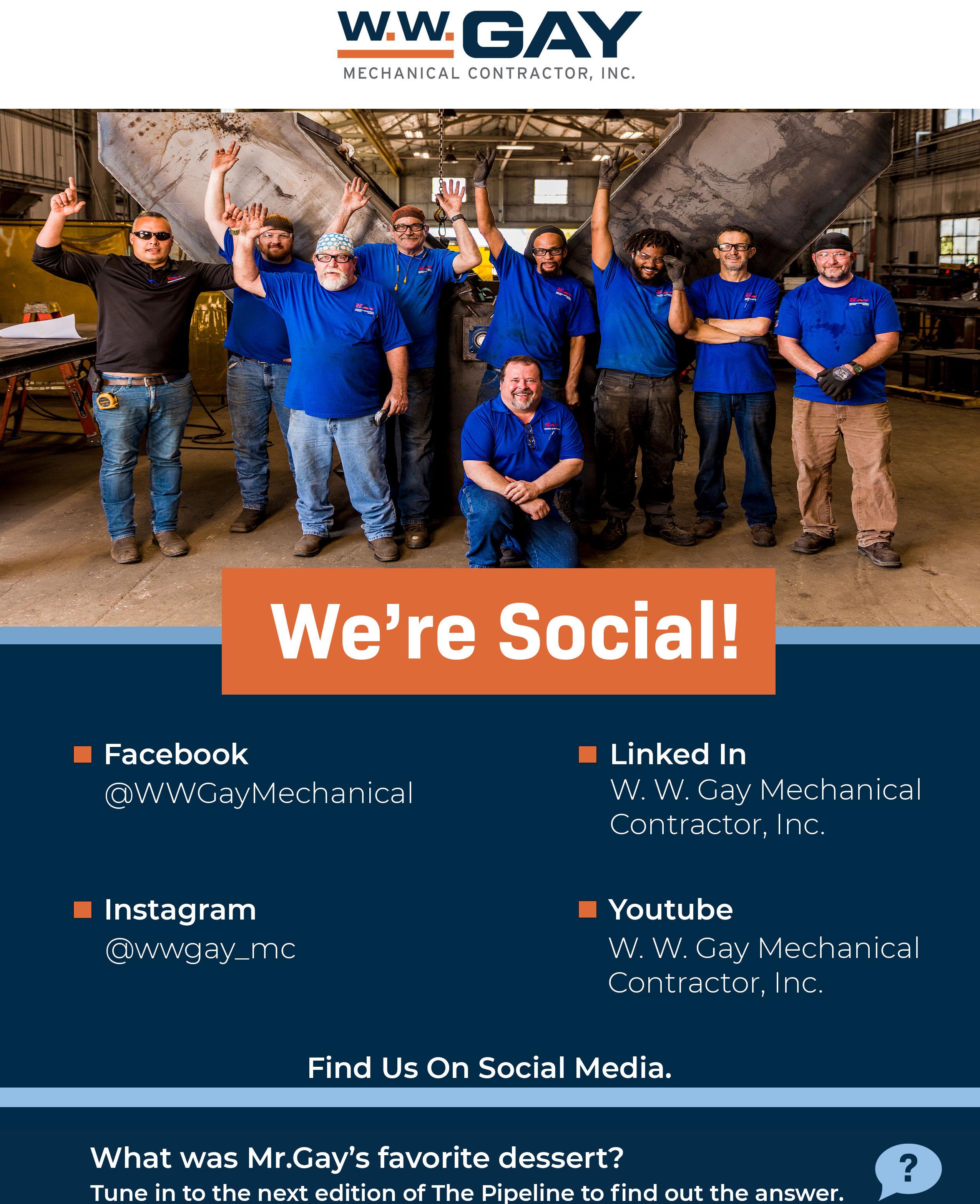 In other big news, I’m so excited to announce the newest member to the Marketing Department, Peyton Beasley. She joined my team just a few short weeks ago as the Marketing Coordinator and will be helping me in so many ways, including The Pipeline, social media, graphic design and more. Peyton is a Jacksonville native and just recently graduated from Flagler College with a degree in Graphic Design. Like many of us, Peyton has family ties to the company and grew up knowing all about W. W. Gay. When asked why she wanted the job here, Peyton quickly said, “There is no other place in Jacksonville that I want to work!”. We’re so glad to have her here, so please help me in welcoming her to the family!