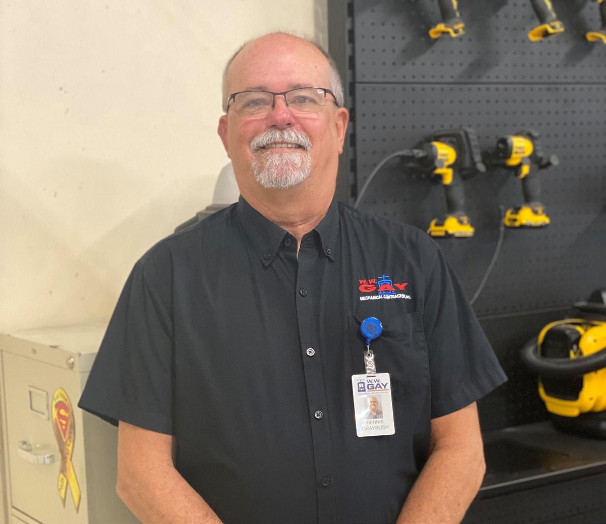 Dennis Graybush, one of Jacksonville’s Safety Specialists, has been helping keep our team safe for the last 3 years. He has experience with both the industrial and commercial sides of the business and had a long career before finding his way to W. W. Gay. No matter what company he was with, safety was always an integral part of each job, which quickly became a passion of his. On a day-to-day basis, Dennis does anything from providing oversight on projects (commercial and industrial segments) to planning and overseeing trainings across all offices. Dennis is also one of the few employees within the company that is both a certified CPR and First-Aid trainer. He is also a General Industry OSHA trainer. Currently, he spends most of his time at the Ascension St. Vincent’s St. Johns project, ensuring each team members safety.