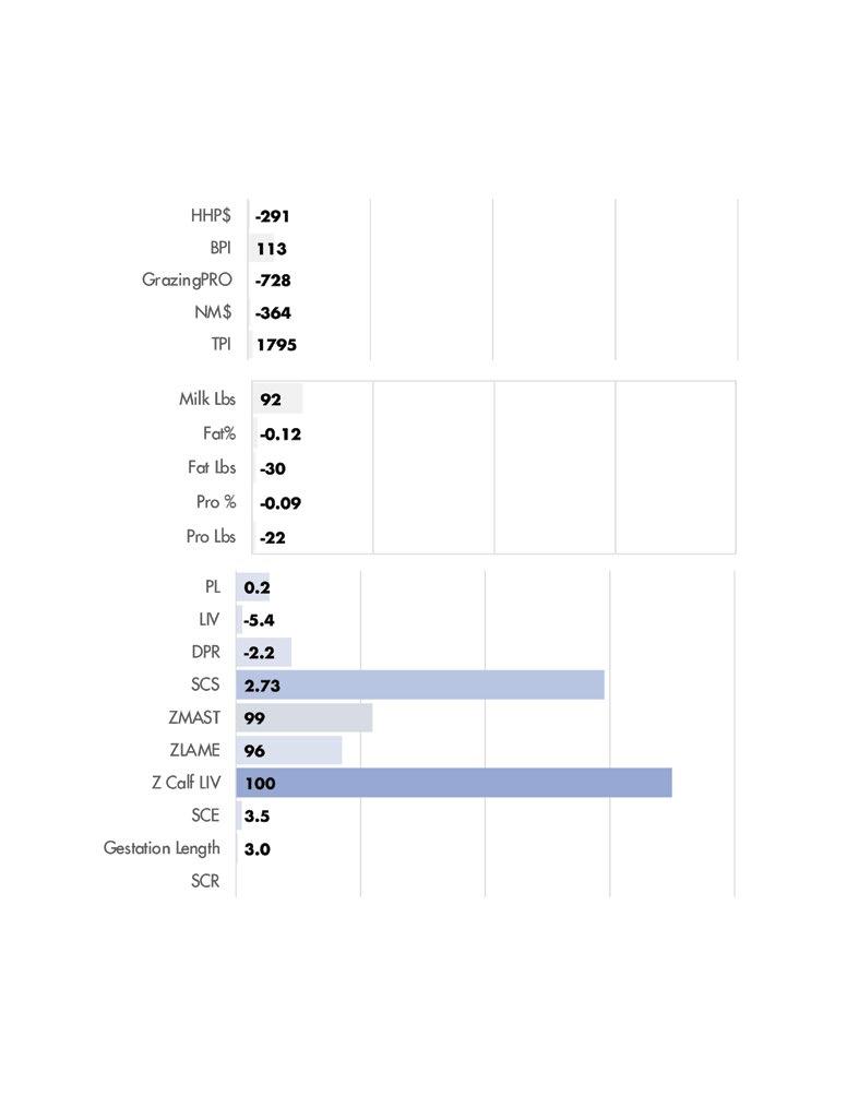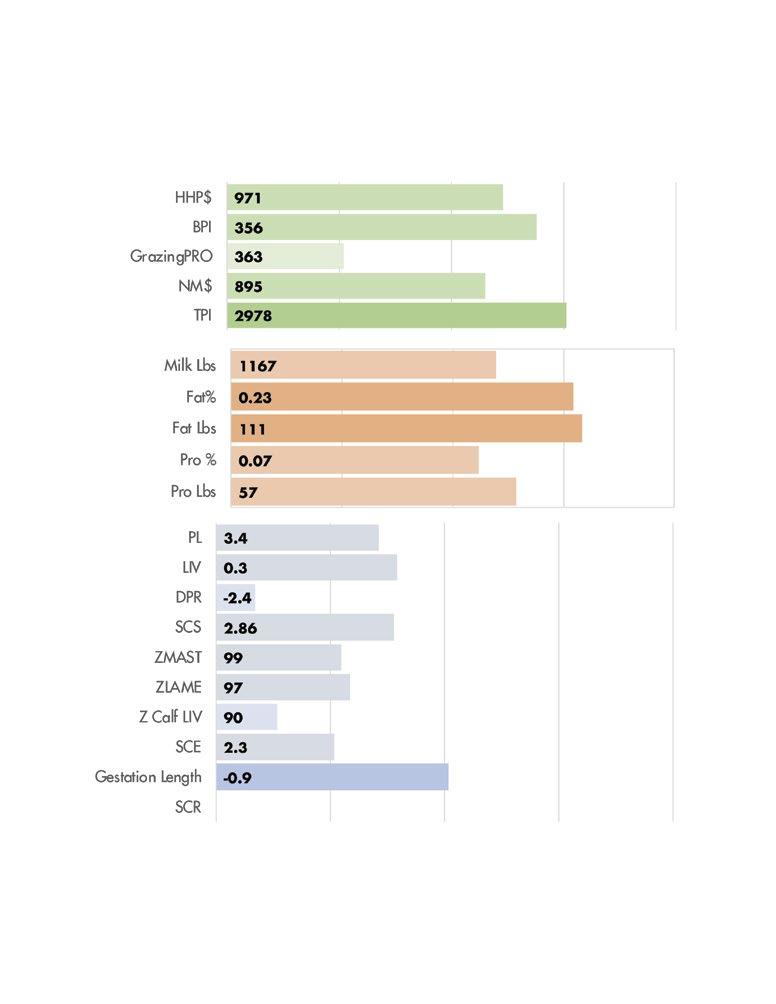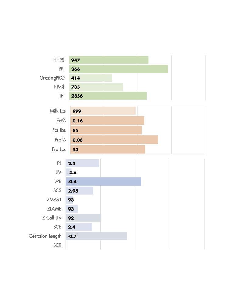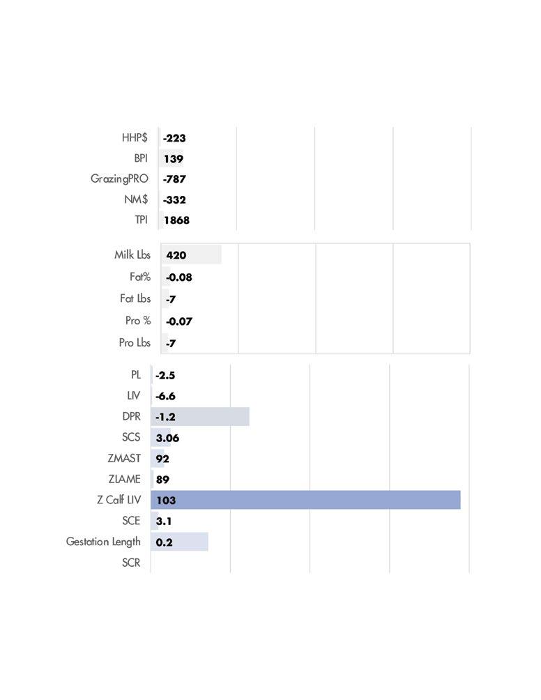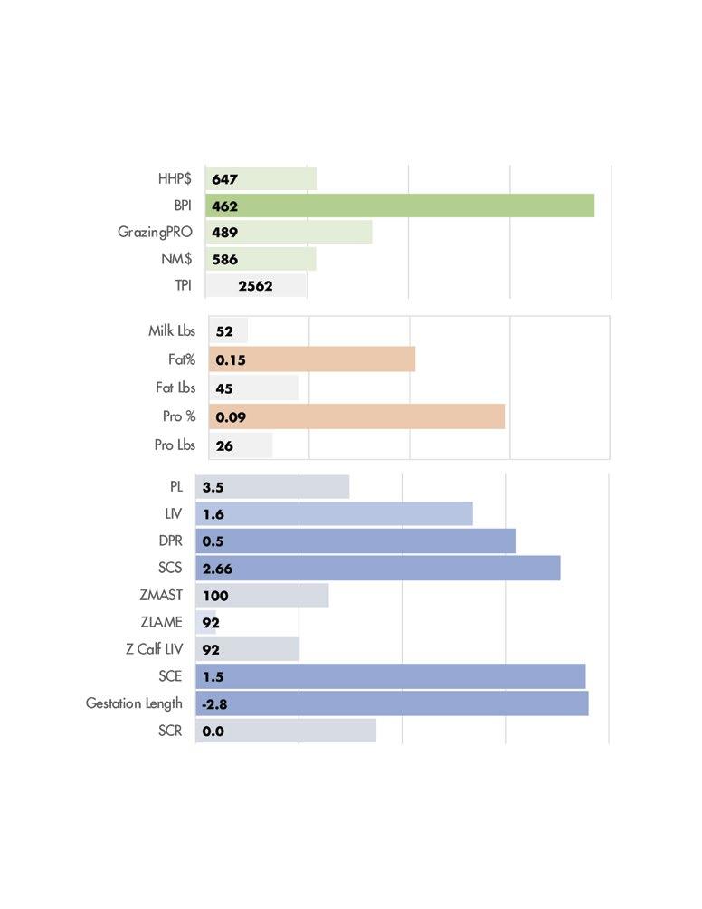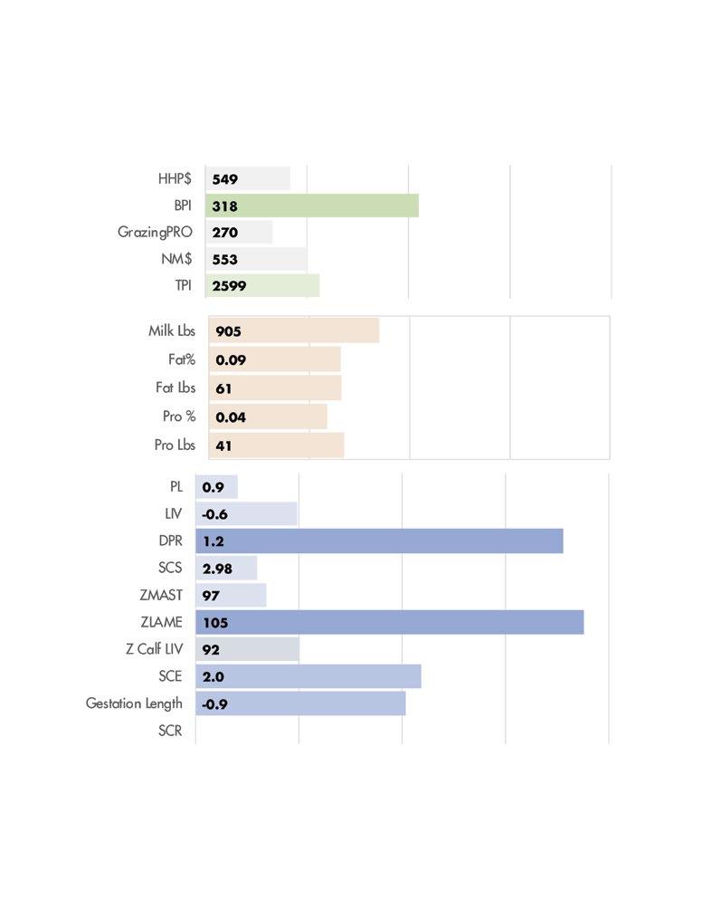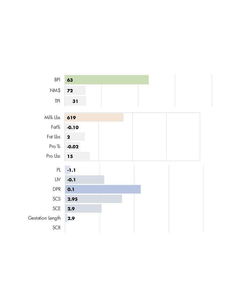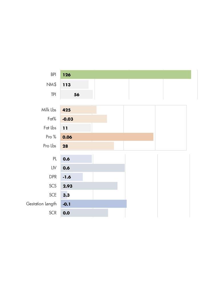 DAM: MEADOW GLOW JAGUAR KANDYAPPLE GP-83 3-08 2X 365D 8246 KGM 4.4% 367 KGF 3.2% 263 KGP MGD: MEADOW GLOW AARON KAREN GP-81 4-03 2X 365D 8118 KGM 5.0% 406 KGF 3.6% 290 KGP Jaguar dtr: Marodore Jaguar Frosty VG-88 PHYSICAL TRAIT EVALUATION PTAT: 0.90 UDC: 0.30 FLC: 0.90 TPI: 50 N 6GU00117 CDCB/AGA Genetic Eval. 04-24 0 dtrs. 0 herds 57% Rel. INDEXES PRODUCTION 25% 50% 75% 100% Bottom 25% 25%-50% 50%-75% Top 25% GUERNSEY JERSEY USDA-CDCB Genomic Eval. 04-24 CDN Genomic Eval. 04-24 Zoetis 04-24 BARLEY 7JE01838 PINE-TREE CHROME BARLEY