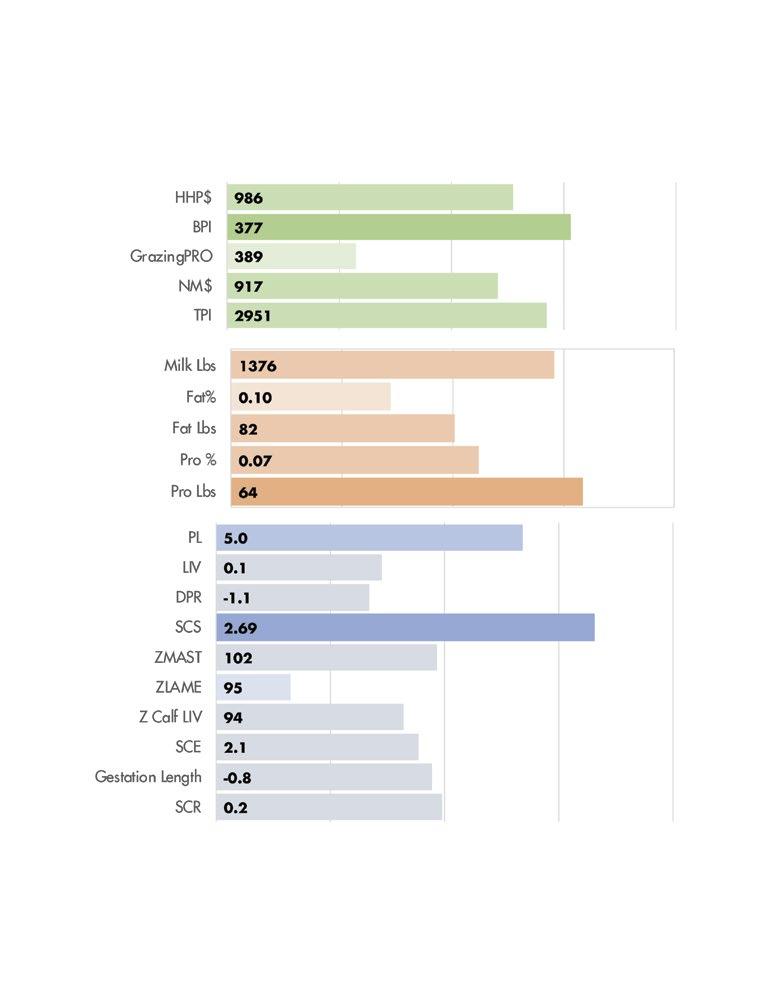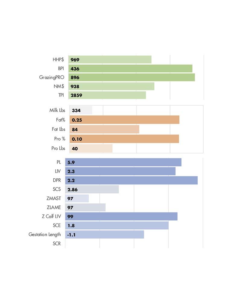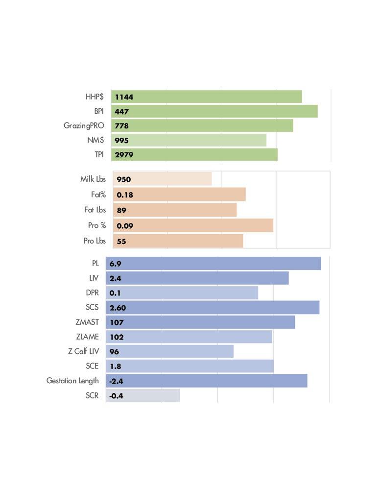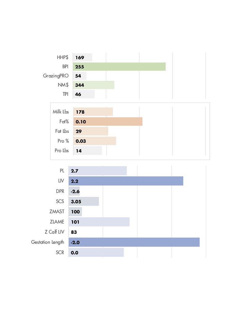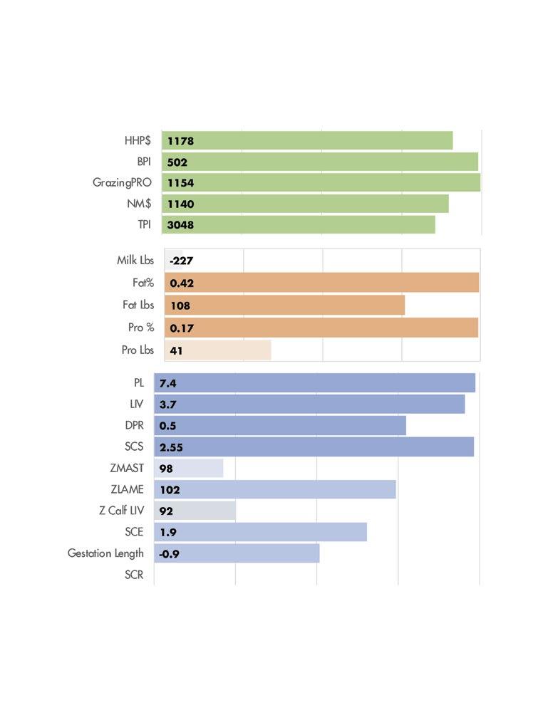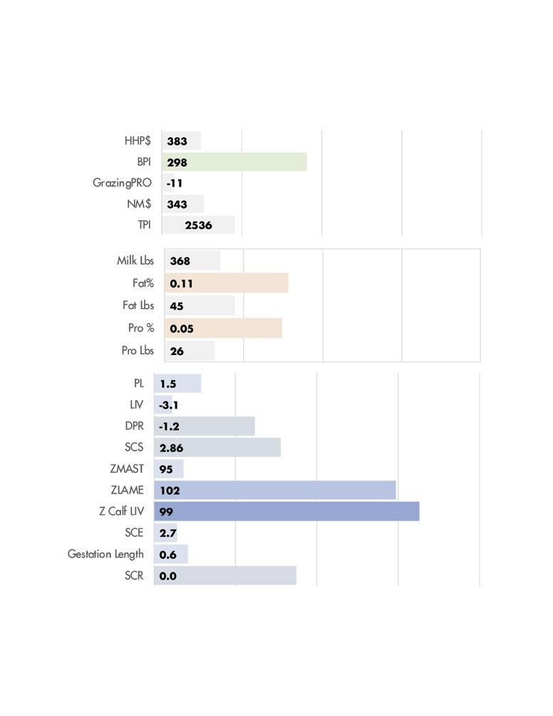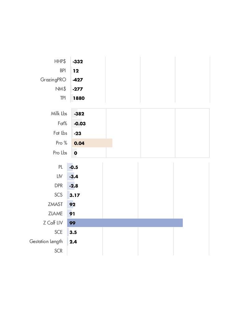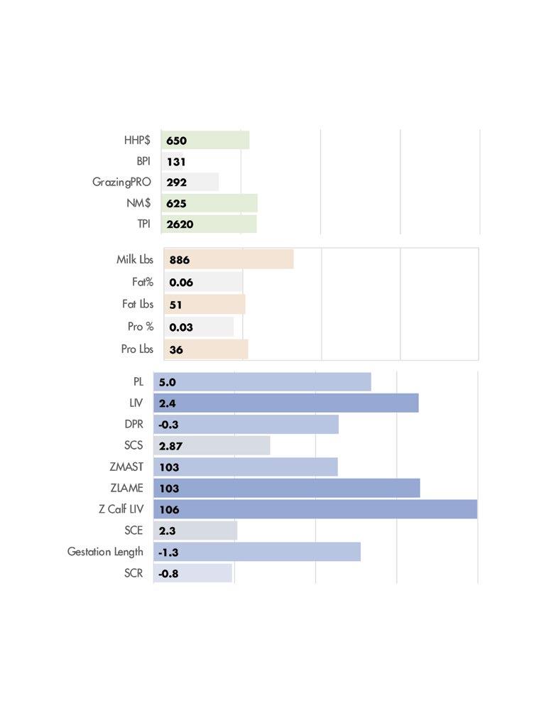DAM: MEADOW GLOW JAGUAR KANDYAPPLE GP-83 3-08 2X 365D 8246 KGM 4.4% 367 KGF 3.2% 263 KGP MGD: MEADOW GLOW AARON KAREN GP-81 4-03 2X 365D 8118 KGM 5.0% 406 KGF 3.6% 290 KGP Jaguar dtr: Marodore Jaguar Frosty VG-88 PHYSICAL TRAIT EVALUATION PTAT: 0.90 UDC: 0.30 FLC: 0.90 TPI: 50 N 6GU00117 CDCB/AGA Genetic Eval. 04-24 0 dtrs. 0 herds 57% Rel. INDEXES PRODUCTION 25% 50% 75% 100% Bottom 25% 25%-50% 50%-75% Top 25% GUERNSEY JERSEY USDA-CDCB Genomic Eval. 04-24 CDN Genomic Eval. 04-24 Zoetis 04-24 BARLEY 7JE01838 PINE-TREE CHROME BARLEY