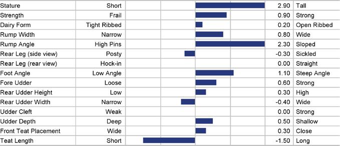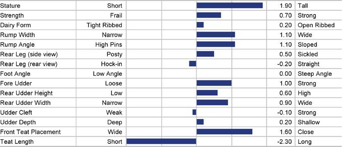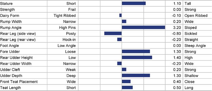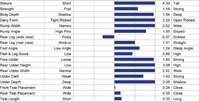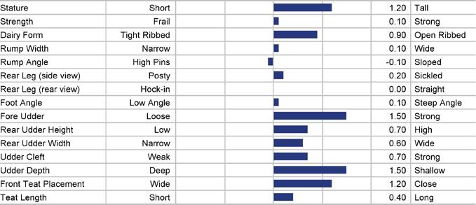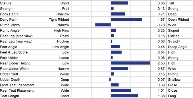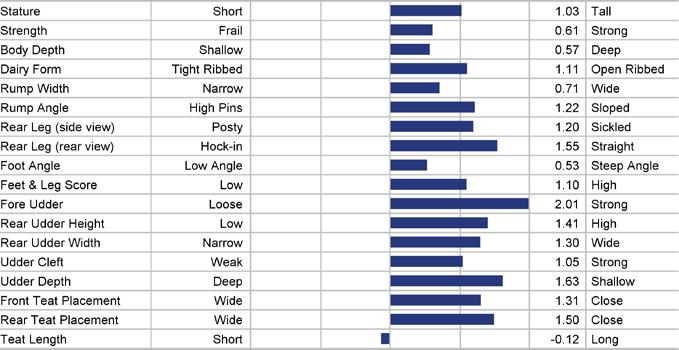PHYSICAL TRAIT EVALUATION PTAT: 1.09 UDC: 1.93 FLC: 0.19 TPI: 3048 LANCASTER 250HO16101 CDCB/HA Genetic Eval. 04-24 0 dtrs. 0 herds 81% Rel. 25% 50% 75% 100% Bottom 25% 25%-50% 50%-75% Top 25% HOLSTEIN