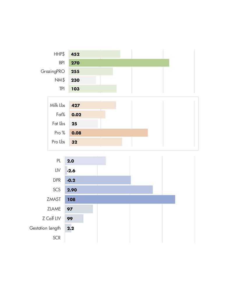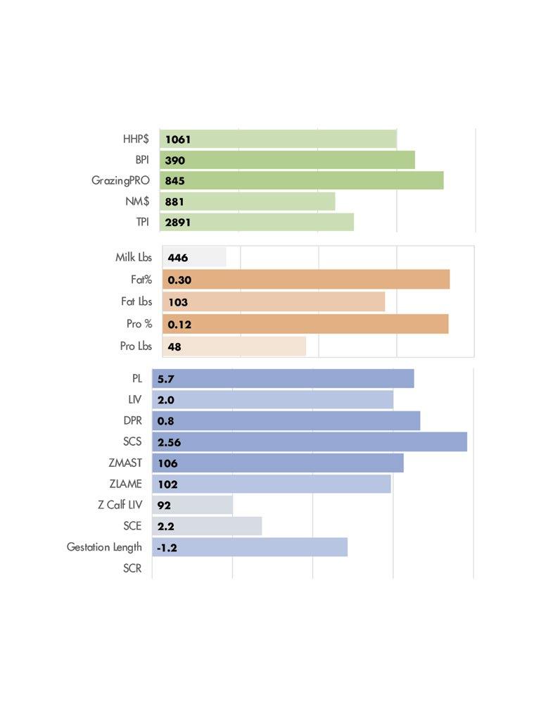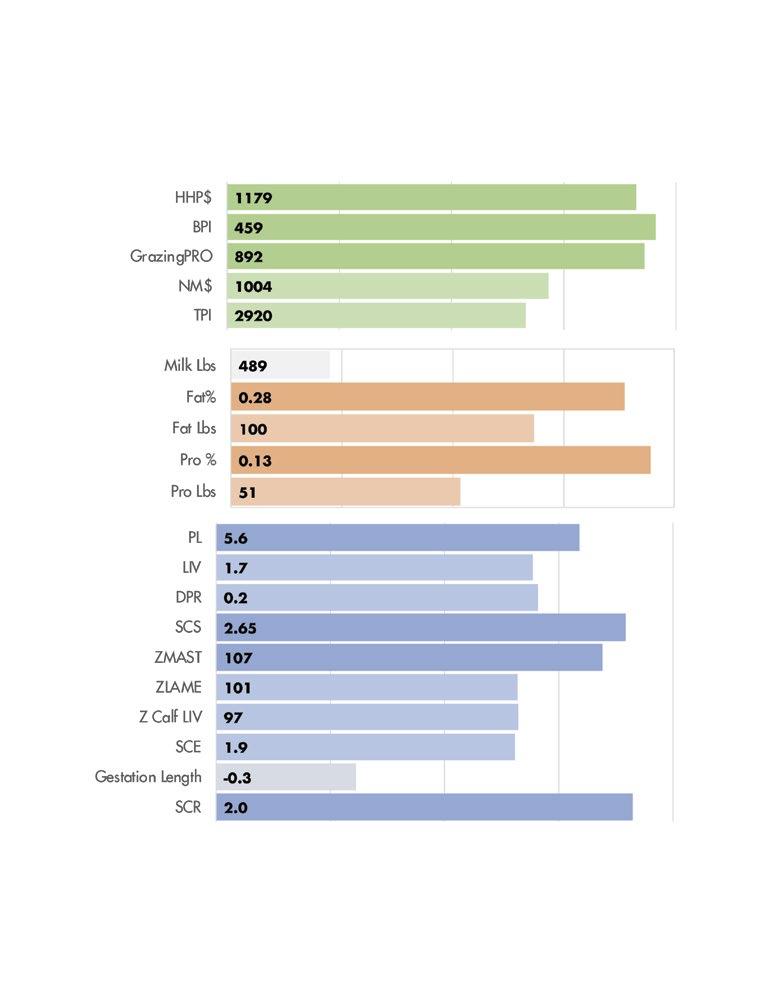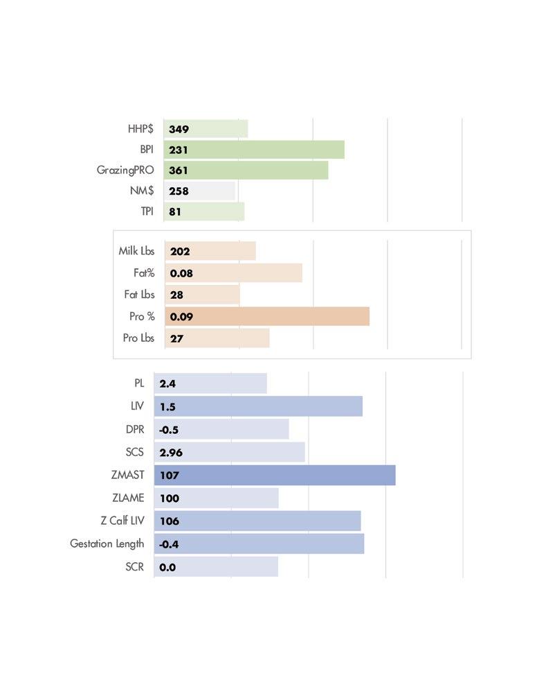 MASSEY X RENEGADE X SUPERSPRING TR TP TM TC TY TV TL TD TE HH1T HH2T HH3T HH4T HH5T HH6T DAM: MS HOMESTEAD SSI 16 298-ET GP-80 2-01 3X 305D 13640 KGM 4.4% 596 KGF 3.5% 471 KGP MGD: BADGER S-S-I 7467 16-ET GP-83 2-00 3X 305D 16316 KGM 3.8% 622 KGF 3.2% 517 KGP HOLSTEIN NASIS: 80FFUGR BETA CASEIN: A2A2 $16 RRP BPI: 459 OT: 95 MS: 95 MILKING SPEED: 101 TEMP: 100 459 BPI 4th