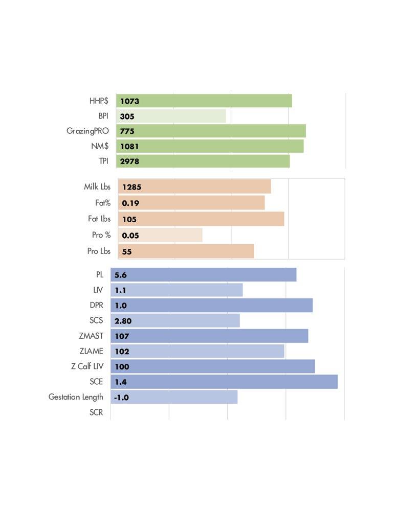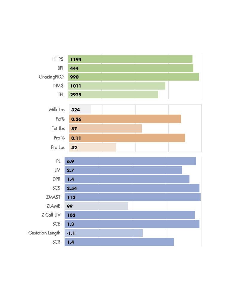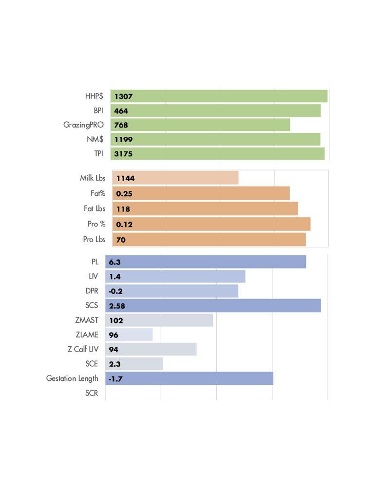 250HO16525 DULET KNOWLESS PARFECT X DELTA-LAMBDA X DIAMOND TR TP TC TY TV TL TD TE HH1T HH2T HH3T HH4T HH5T HH6T DAM: DULET D-LAMBDA KATRINA VG-87 MGD: DULET DIAMOND KARVY HOLSTEIN NASIS: 70FFU73 BETA CASEIN: A1A2 $40 RRP $75 SEXED BPI: 272 OT: 106 MS: 108 MILKING SPEED: 101 TEMP: 102
