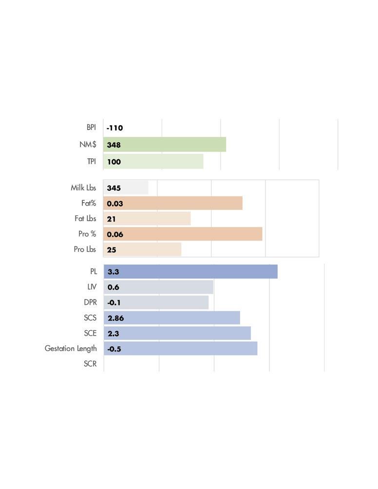 UNSTOPABULL X BYWAY X G W ATWOOD TP TC TY TV TL TD TE HH1T HH2T HH3T HH4T HH5T HH6T DAM: MILKSOURCE BYWAY AFFECTION EX-94 4-05 2X 305D 18126 KGM 4.3% 788 KGF 2.6% 469 KGP MGD: MS APPLE ATARAH-ET HOLSTEIN NASIS: 80FFRCL BETA CASEIN: A1A2 $18 RRP $50 SEXED BPI: 113 OT: 105 MS: 108 MILKING SPEED: 101 TEMP: 102