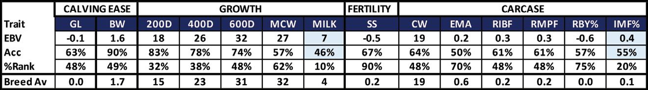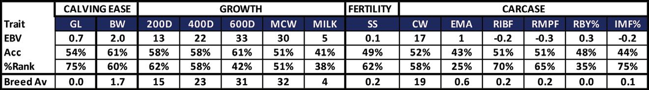 • He stands out for all the key economic traits: Gestation Length, Growth, MCW, Scrotal, EMA and IMF; along with top 1% on all indexes
