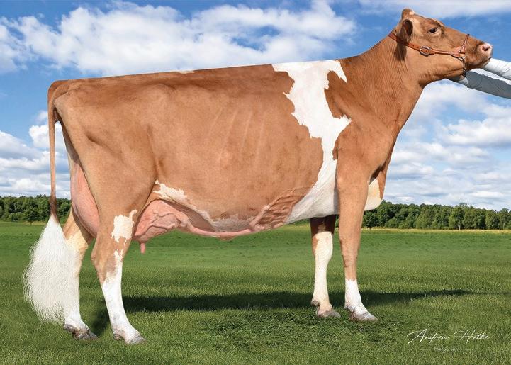 BIVER X WONDERMENT X SUPREME TM BHPT BH2T BHMT BHWT BH14T BHDT A2A2 DAM: KAR-LINN WONDRMNT REESE ET EX-93 5-09 2X 305D 11802 KGM 5.2% 619 KGF 3.0% 357 KGP MGD: KAR-LINN SUPREME REAGAN EX-91 2-05 2X 305D 8868 KGM 4.5% 400 KGF 3.5% 310 KGP BROWN SWISS NASIS: 80SBP21 BETA CASEIN: A2A2 $28 RRP $65 SEXED BPI: -2 MILKING SPEED: 101 TEMP: 103 AMPAGE 7BS00905 PHYSICAL TRAIT EVALUATION PTAT: 0.60 UDC: 0.74 PTI: 9 CDCB/BSBA Genetic Eval. 08-23 83 dtrs. 43 herds 90% Rel. CDCB GENETIC EVALUATION 08-23 290 dtrs. 132 herds HHP$ PTI NM$ PTAM REL. PTA%F PTAF PTA%P PTAP NA 9 -10 420 96 -0.12 -10 -0.02 9 PL SCS MASTITIS (CDCB) MASTITIS (ZOETIS) LAMENESS (ZOETIS) DPR SCR/REL. SCE/REL. GESTATION LENGTH 1.7 3.01 -0.7 NA NA -1.7 2.9/83 2.4/91 -1.2 BROWN SWISS GUERNSEY AUDREY