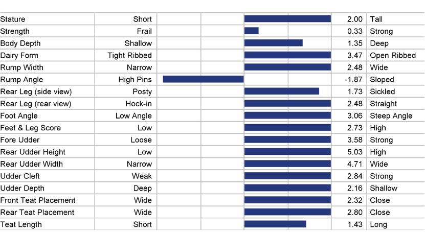 14HO07796 WELCOME SILVER GRIFF-ET A2A2 SILVER X SUPERSIRE X MAN-O-MAN TR TP TM TC TY TV TL TD HH1T HH2T HH3T HH4T HH5T HH6T DAM: WELCOME SUPERSIRE GALES-ET VG-86 4-00 3X 277D 14755 KGM 4.6% 674 KGF 3.1% 454 KGP MGD: VISION-GEN MANOMAN GILDIE VG-87 4-10 3X 355D 16624 KGM 4.4% 729 KGF 3.1% 520 KGP HOLSTEIN NASIS: 80FFMDL BETA CASEIN: A2A2 $26 RRP $55 SEXED BPI: 325 OT: 103 MS: 102 MILKING SPEED: 101 TEMP: 101 F 14HO07796 PHYSICAL TRAIT EVALUATION PTAT: 0.88 UDC: 0.64 FLC: 0.27 TPI: 2810 CDCB/HA Genetic Eval. 08-23 1113 dtrs. 183 herds 98% Rel. IB-M/USA 08-23 9452 dtrs. 1040 herds HHP$ TPI NM$ PTAM REL. PTA%F PTAF PTA%P PTAP 796 2810 803 946 99 0.24 106 0.09 56 PL SCS MASTITIS (CDCB) MASTITIS (ZOETIS) LAMENESS (ZOETIS) DPR SCR/REL. SCE/REL. GESTATION LENGTH 2.1 3.11 -0.6 96 95 -0.2 2.5/99 2.2/99 -1.5