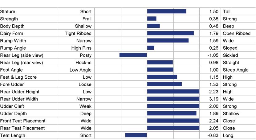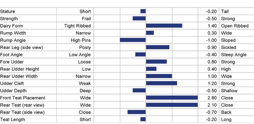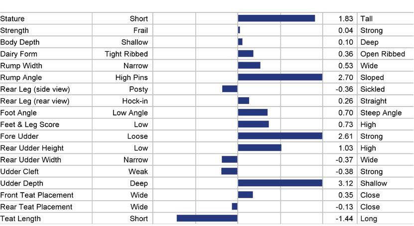 MILLINGTON X JACEY X SUDAN TR TP TY TV TL TD HH1T HH2T HH3T HH4T HH5T HH6T DAM: JOSEY-LLC JCY SKYE 8948-ET GP-84 2-00 2X 305D 10449 KGM 3.6% 373 KGF 3.0% 313 KGP MGD: DYMENTHOLM SUNVIEW SKYE VG-85 2-02 2X 305D 12950 KGM 3.9% 505 KGF 3.1% 398 KGP HOLSTEIN NASIS: 80FFMJG BETA CASEIN: A1A2 $26 RRP $65 SEXED BPI: 318 OT: 106 MS: 105 MILKING SPEED: 103 TEMP: 101 TOTEM 250HO13531 PHYSICAL TRAIT EVALUATION PTAT: 1.80 UDC: 1.92 FLC: 0.83 TPI: 2761 CDCB/HA Genetic Eval. 08-23 344 dtrs. 174 herds 92% Rel. IB-M/USA 08-23 803 dtrs. 380 herds HHP$ TPI NM$ PTAM REL. PTA%F PTAF PTA%P PTAP 762 2761 670 757 96 0.17 79 0.05 38 PL SCS MASTITIS (CDCB) MASTITIS (ZOETIS) LAMENESS (ZOETIS) DPR SCR/REL. SCE/REL. GESTATION LENGTH 2.5 2.67 2.3 106 104 -0.5 -0.5/99 2.7/99 -1.5 Brightridge Totem Beth VG-86 ULMER 14HO14893