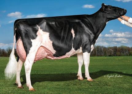 FASCINATOR X TOPSHOT X SILVER TR TP TC TY TV TL TD HH5C HH1T HH2T HH3T HH4T HH6T DAM: PEAK ZENITH-ET MGD: BRU-DALE ZERONICA-ET VG-85 2-03 2X 365D 12492 KGM 4.6% 575 KGF 3.3% 410 KGP HOLSTEIN NASIS: 80FFRFK BETA CASEIN: A1A2 $12 RRP BPI: 366 OT: 96 MS: 96 MILKING SPEED: 100 TEMP: 100 366 BPI ULMER 14HO14893 PHYSICAL TRAIT EVALUATION PTAT: 0.21 UDC: 0.38 FLC: -1.12 TPI: 2630 CDCB/HA Genetic Eval. 08-23 32 dtrs. 13 herds 87% Rel. MGD: Bru-Dale Zeronica-ET VG-85 CDCB GENETIC EVALUATION 08-23 403 dtrs. 46 herds HHP$ TPI NM$ PTAM REL. PTA%F PTAF PTA%P PTAP 795 2630 705 821 97 0.19 87 0.06 42 PL SCS MASTITIS (CDCB) MASTITIS (ZOETIS) LAMENESS (ZOETIS) DPR SCR/REL. SCE/REL. GESTATION LENGTH 2.7 2.81 1.3 101 103 -0.5 NA 1.7/95 -2.2 Family member: Macland HF Yoder Rachel-ET EX-96 HOLSTEIN