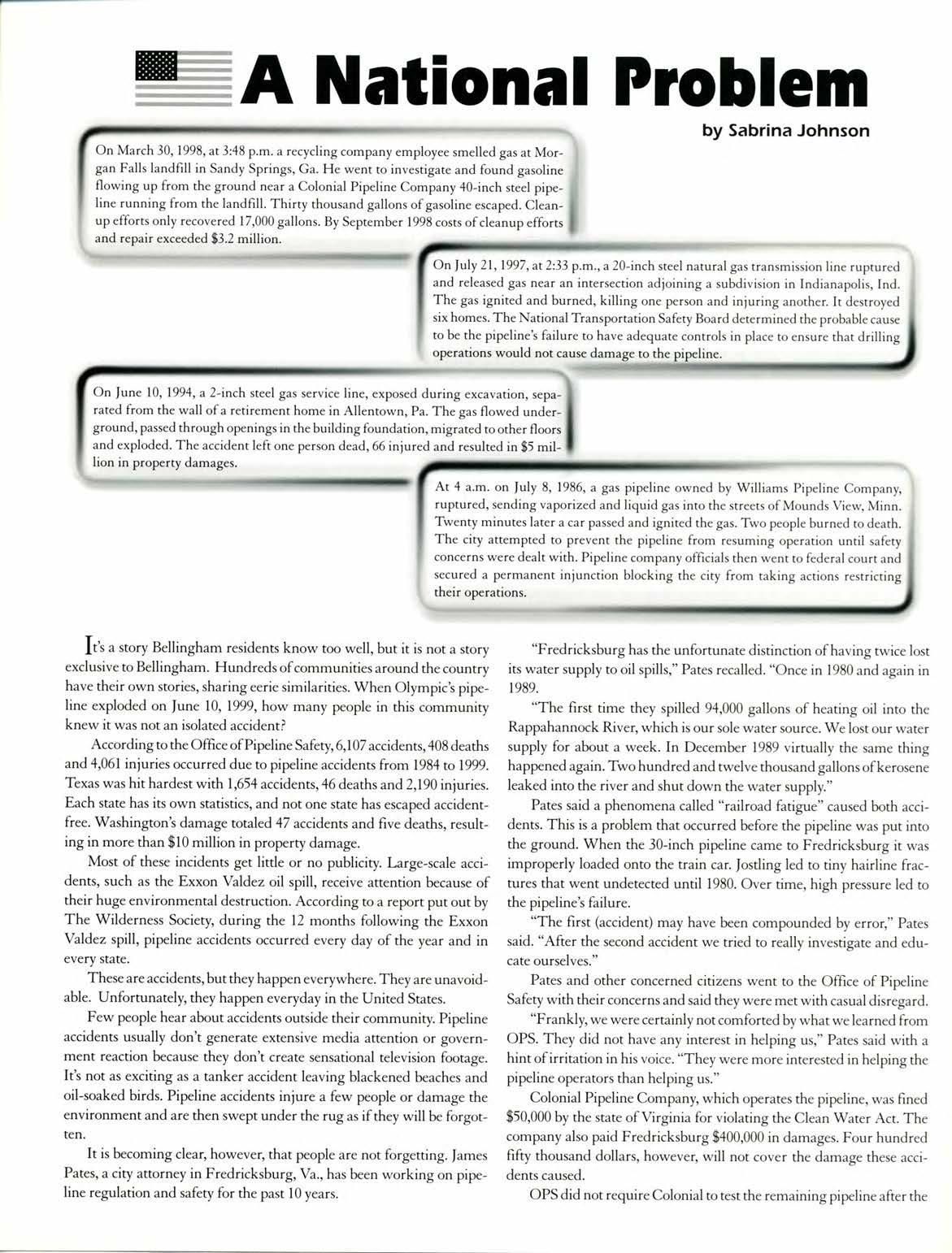 Olympic Pipeline Explosion: A Retrospective Issue (spring/summer 2000)