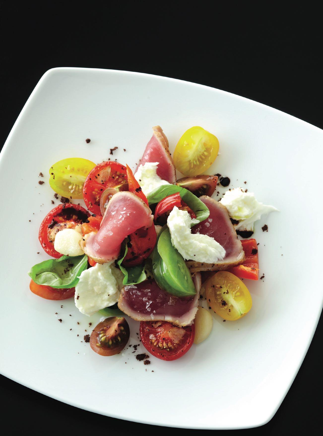 SEARED TUNA CAPRESE SALAD WITH BUFFALO MOZZARELLA