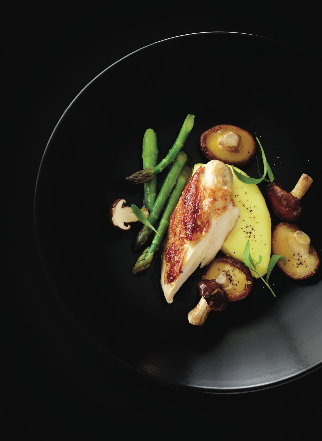 SOUTH ISLAND BLUE COD WITH MUSHROOMS, PEA AND SPRING ONION PURÉE AND MAORI POTATOES