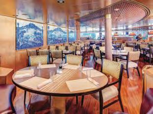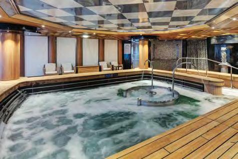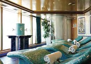 Relaxation starts the moment you set foot on board and the sense of space is liberating so you will never feel crowded. Stroll the spacious decks, sink into a voluptuous armchair in one of the many elegant lounges or spend some quiet time in the drawing room with its library books and countless board games. Perhaps a movie appeals or a flutter at the casino, maybe a tutored wine tasting or cooking lesson to entrance one’s palate or just chill out in one of the two swimming pools and three hot tubs. And for the fitness freaks, feel motivated to exercise in the stateof-the-art gymnasium or indulge in the spa with its enticing range of beauty therapies that promises ageless bliss?