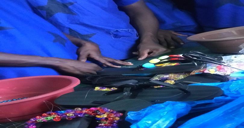 Figure 11: Skill training (Beads on slippers making) by facilitators and inmates (Source Edith Duah 2019)